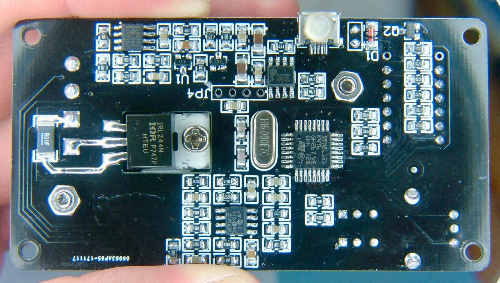 Just to the right of the silver 16MHz oscillator in the center of the board, there’s a STM8L151 - a little microcontroller with a 12-bit analog-digital converter that’s just perfect for something like this. The modern world has no shortage of good microcontrollers, though it seems we’re a bit short on people who can write good firmware for them.