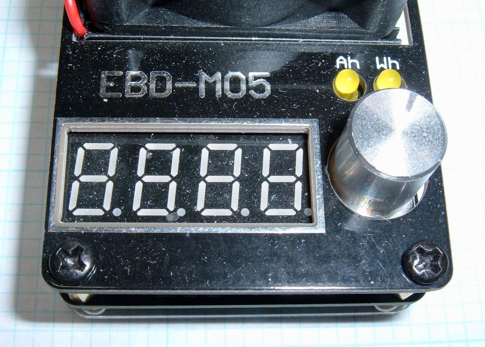 The unit has a very simple interface on the front - a knob (that you can push), a 4 digit 7 segment display, and two LEDs (to indicate amp-hours and watt-hours). The knob is sturdy, and it’s a rotary encoder knob, not an analog control (so it clicks into a number of positions and lets you set values accurately).