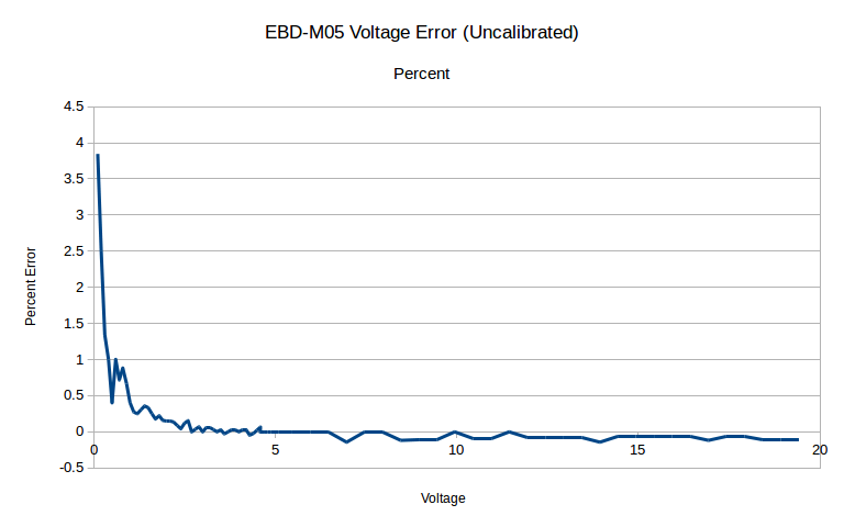 The unit is rated as a +/- 0.5% accuracy unit, and possibly +/- 0.005V (depending on how you read things). I ran through a voltage sweep, comparing the unit output to my multimeter output, and other than some percent error at the very bottom end (if you’re off by 0.001V at 0.10V, that’s still 10% error), it’s dead on. Above about 1.5V, it’s easily within 0.5%, and for most of the voltage range, it’s within about 0.2% of my meter.
