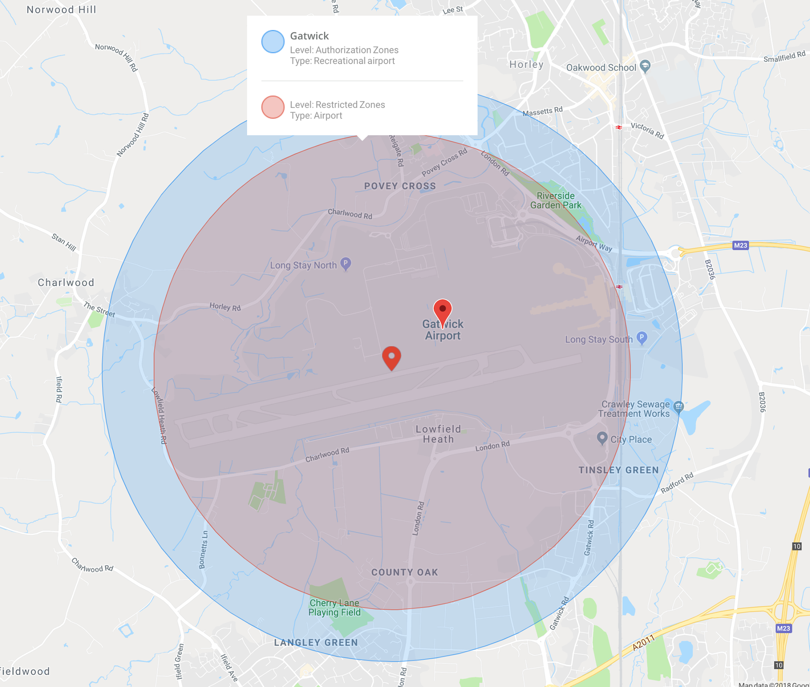 DJI makes the most common drones on the market, and they have a geofencing database that prevents one from flying right around an airport. They have authorization zones, in which one must provide a phone # or credit card number to fly, and restricted areas, in which they simply won’t operate. Gatwick is covered, rather tightly, by such a zone, though one could easily fly right off the end of the runway without limitations if you had a non-easily-tracked phone # or such.