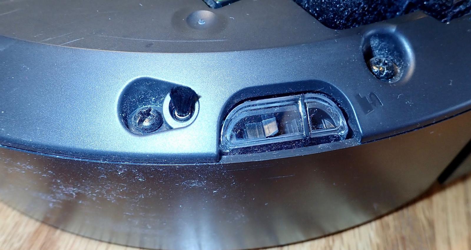 Given how much dust has already built up under here, I might consider taking the bumper off and using some canned air every 6 months or so - the emitters are going to tolerate an awful lot, but eventually they’ll get totally covered with dust and the Roomba will “go blind.” If you see yours crashing into things at full speed instead of slowing down, try cleaning out under here.