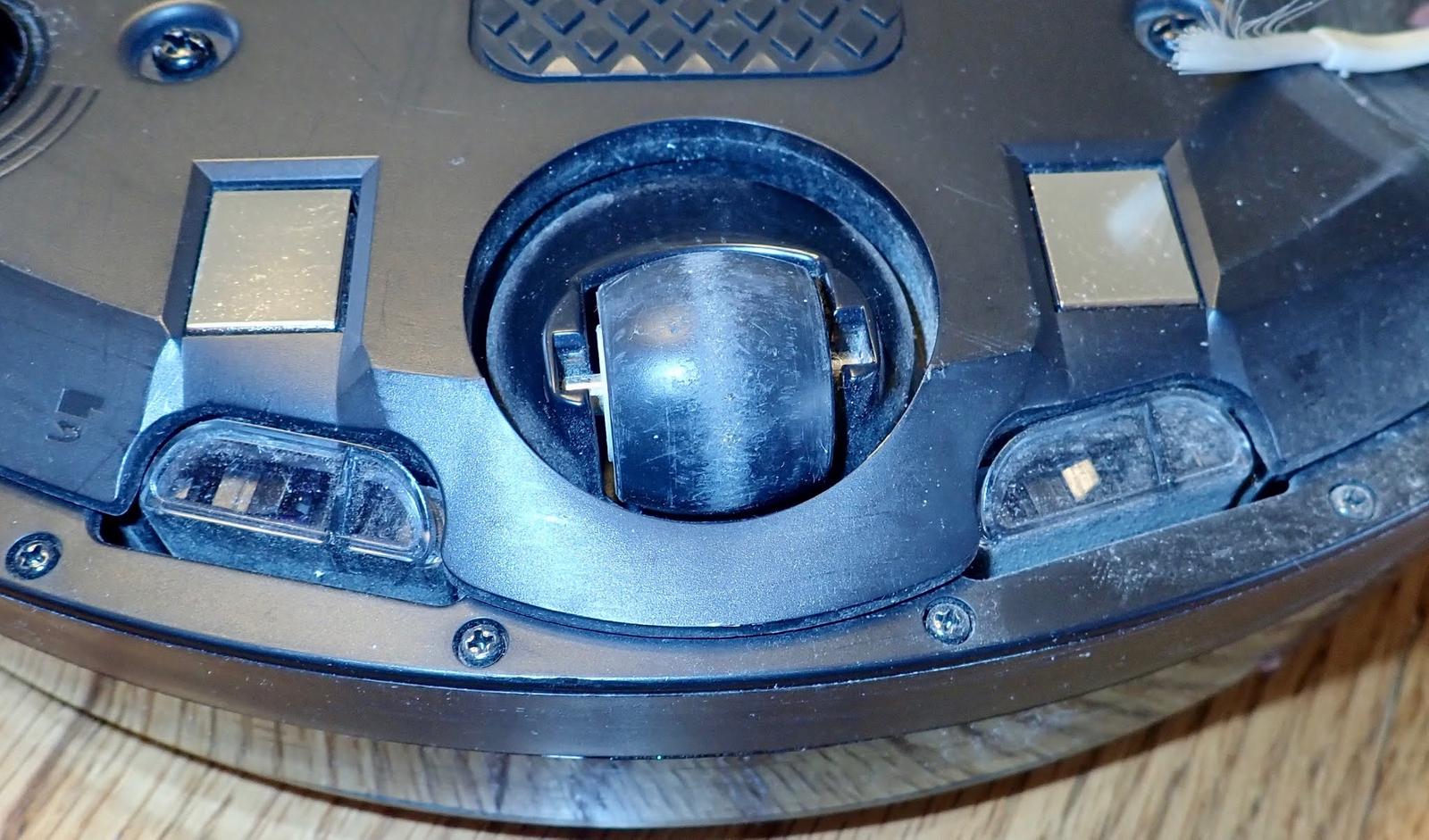Another sensor on the bottom is called a floor sensor. I can’t find details on what it does, beyond collect quite a bit of dust and require cleaning. I think it’s a camera of some sort to tell the difference between carpet, wood, tile, etc, and if I had to guess, I’d say it were probably infrared like the rest of the sensors. Anyone know details here?