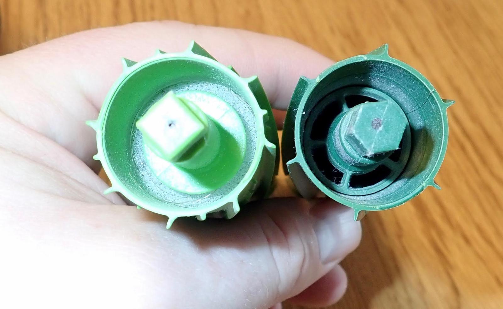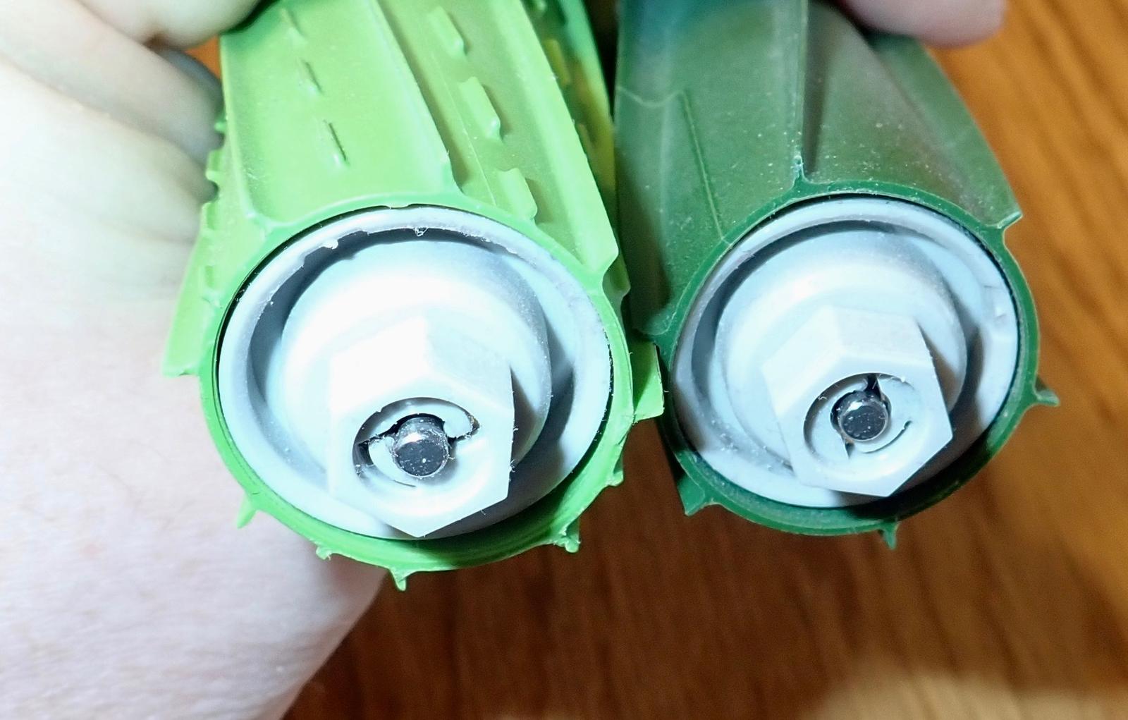 The drive ends are keyed - you can’t put them into the wrong spot. The lighter green roller, on the left, has some open cell foam filling it to help it keep shape. The dark green roller doesn’t. You can find videos of how this works, conceptually, but it does a good job and the hair is easy to clean out.