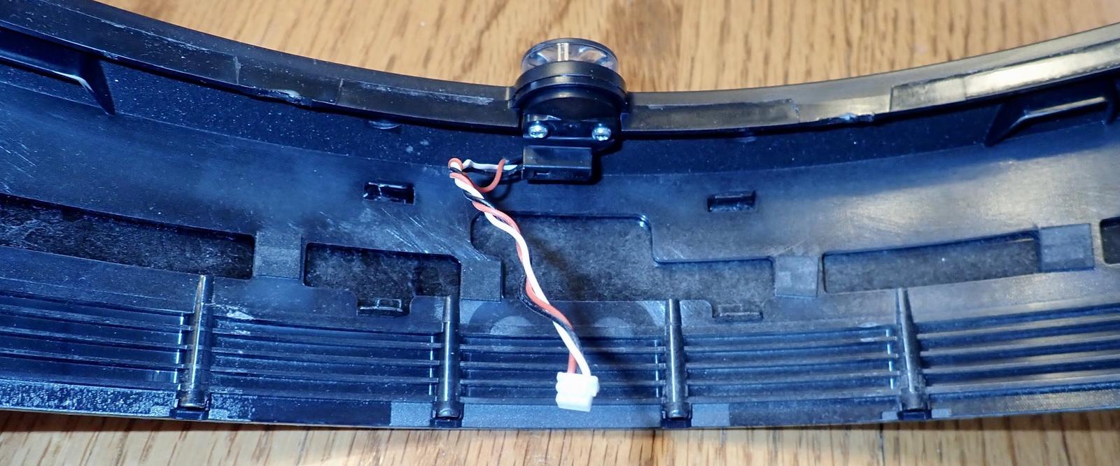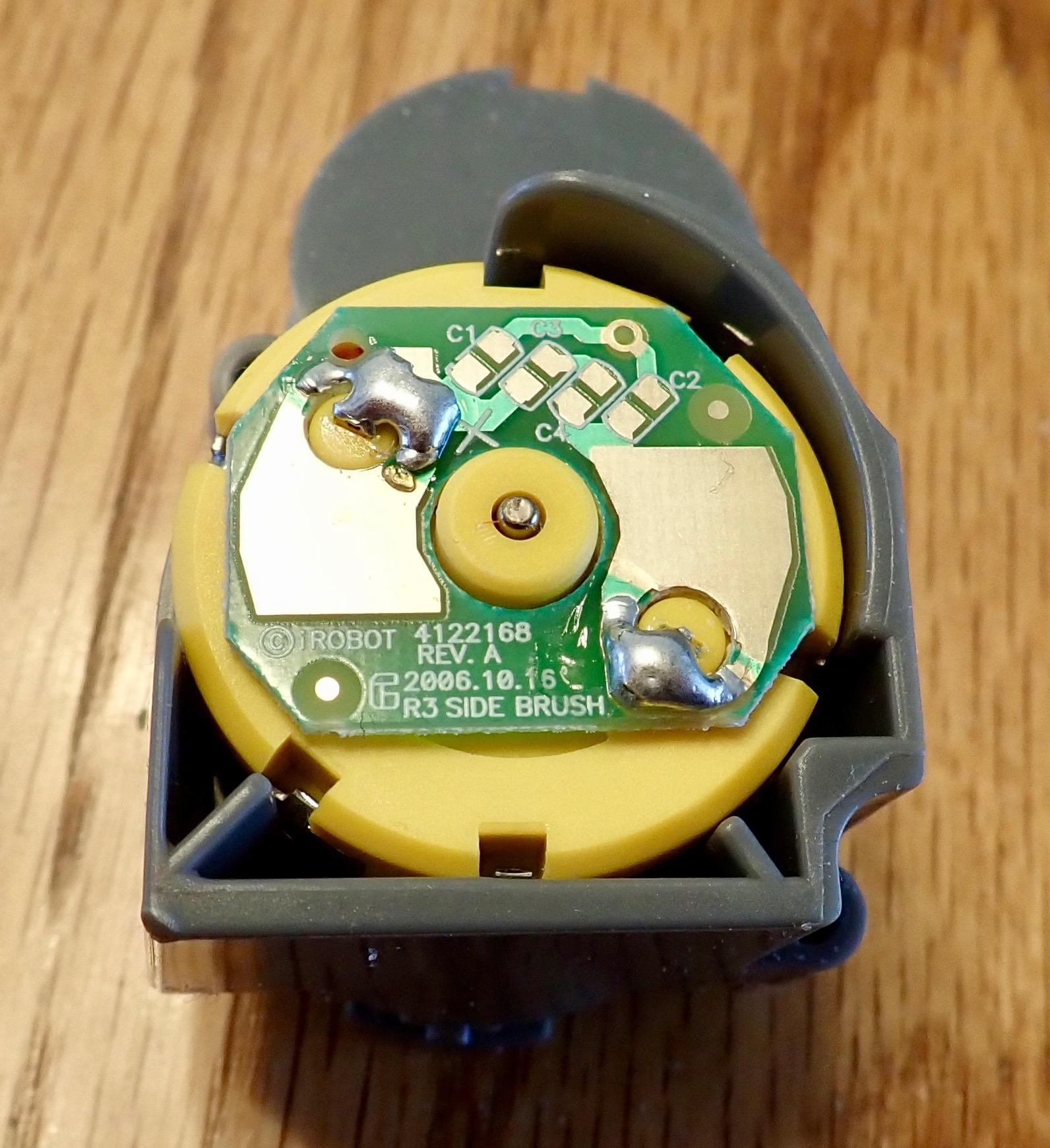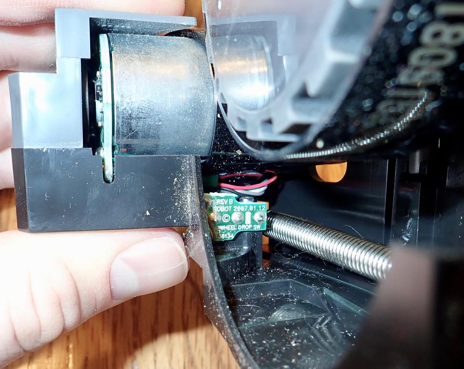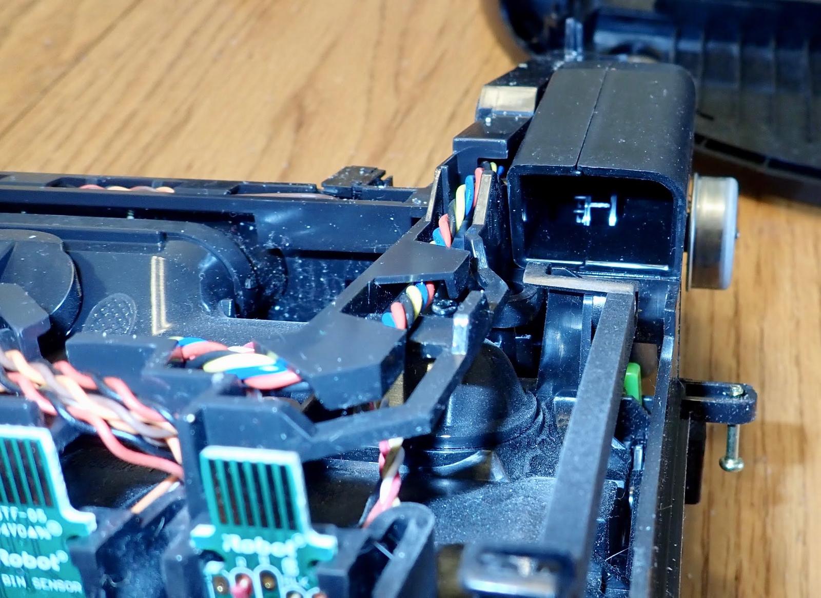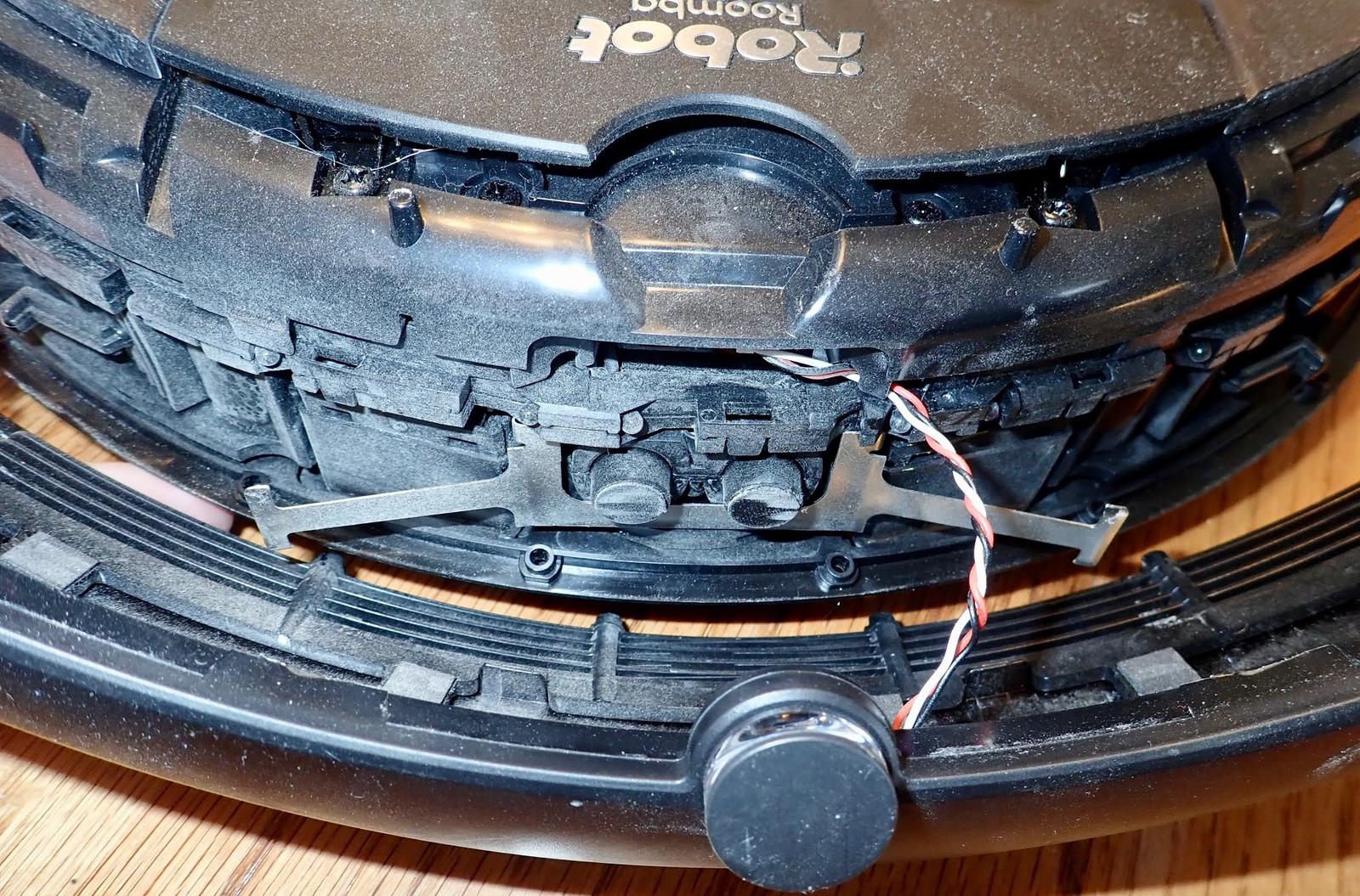 On each side, a physical sensor detects if the bumper is being pushed back. They’re quite sensitive, and don’t have any audible or tactile click as they cycle. Further investigation of those would be interesting, but starts to cross into “I promised that I’d have a working robot at the end of this…” limits.