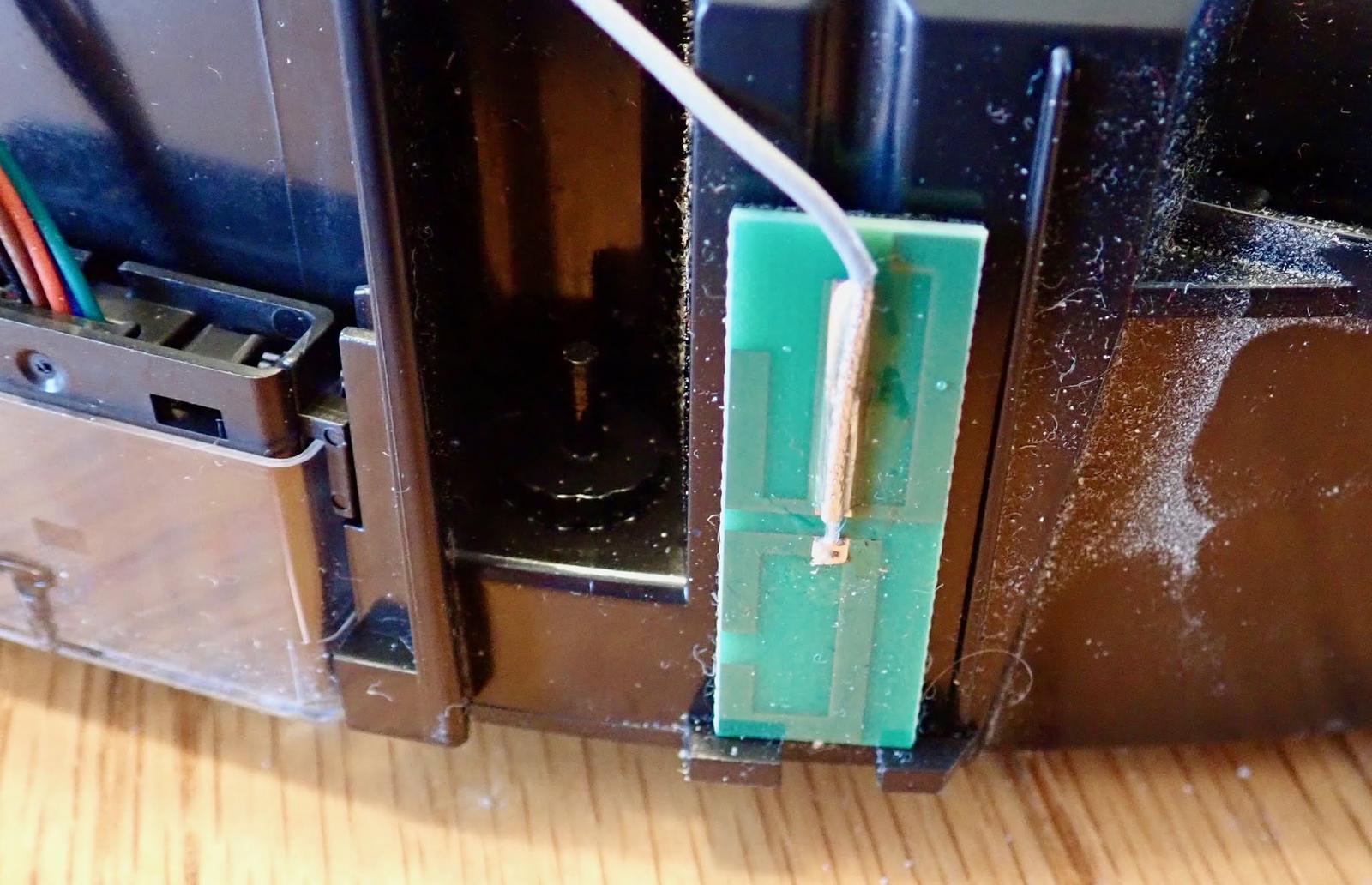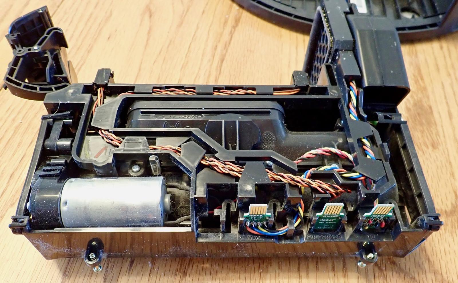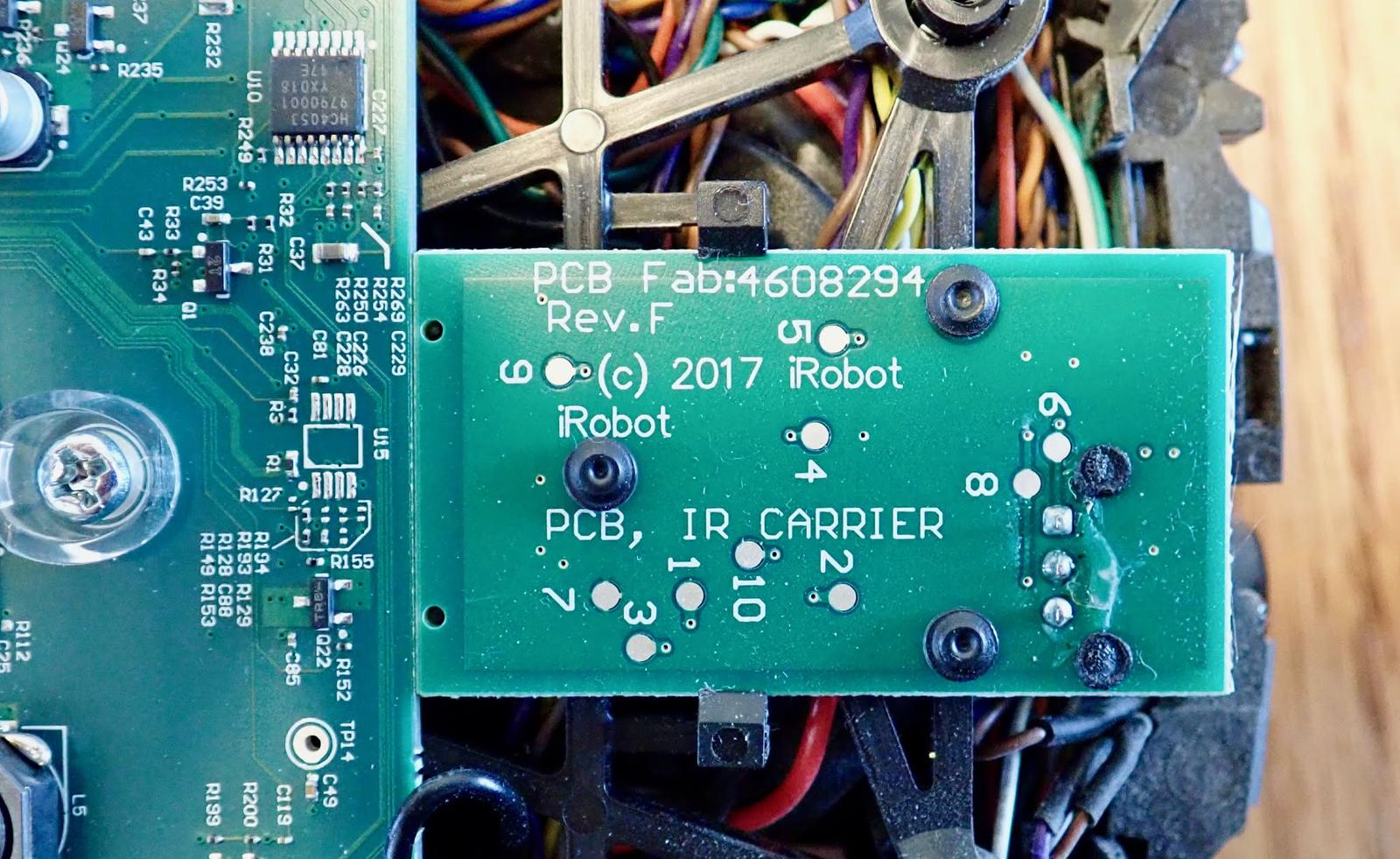 Along the bottom of the Roomba, there’s a PCB wireless antenna. This serves to handle wireless and bluetooth. I consider these a black art - some traces on PCB make a perfectly good antenna, and they have all sorts of interesting shapes to them.