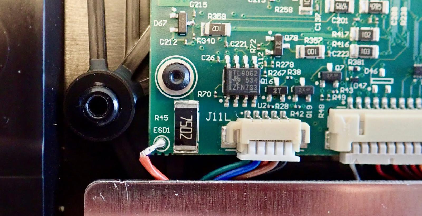 Here’s that ESD1 connection. The wire heads straight down to that little brush on the bottom.