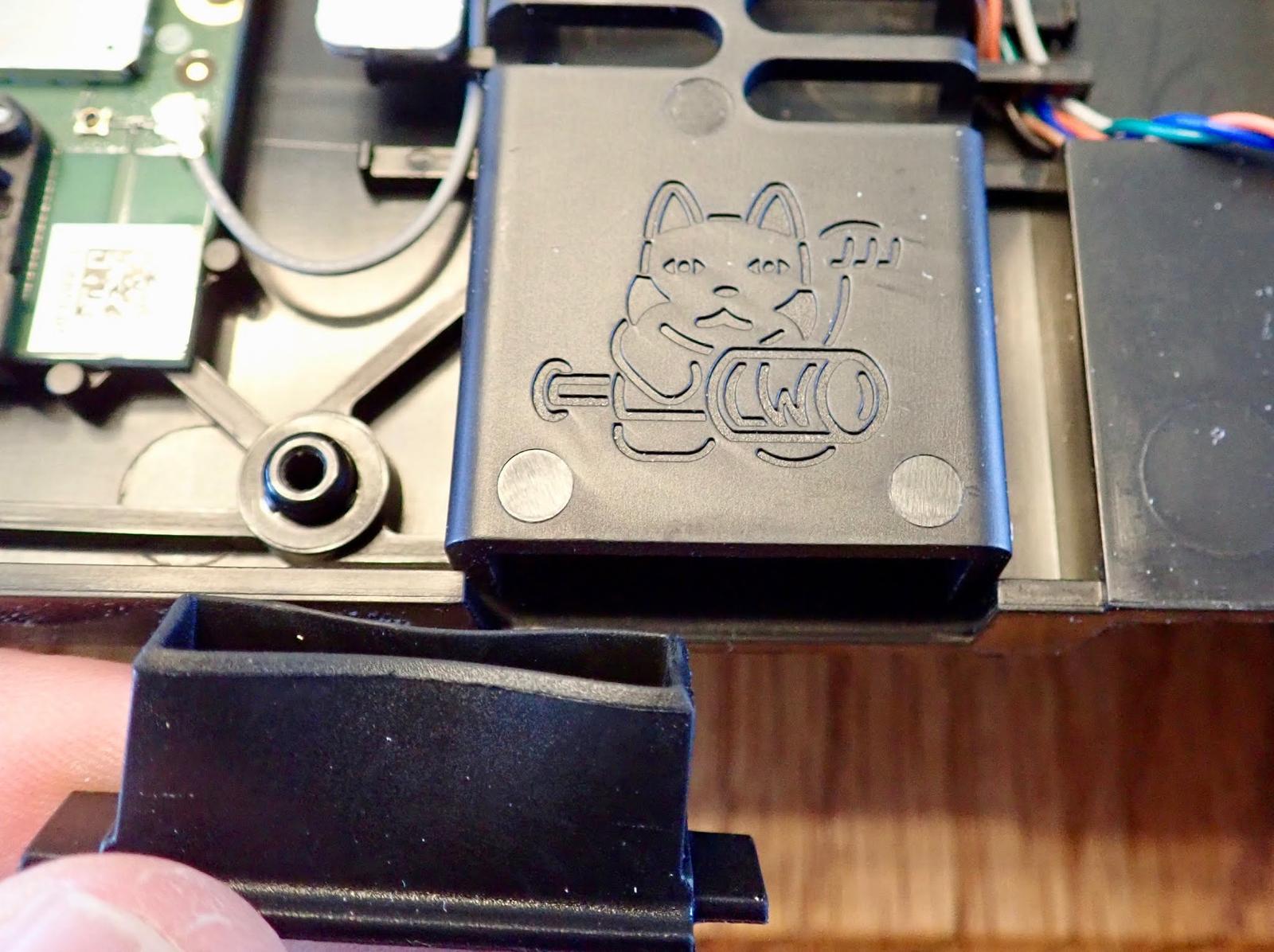 Finally, we’re back to the cat. The cat is not just artwork. The cat is on top of what appears to be a very deliberately molded module holder - complete with a rubber plug in the end.