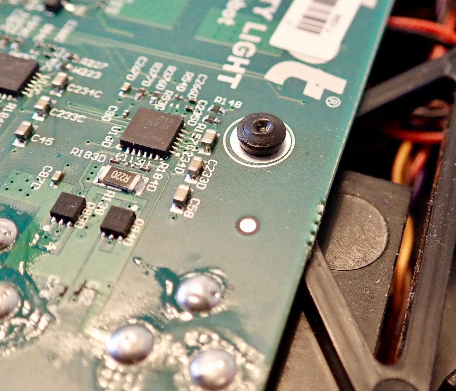 My only real complaint with this board is that it’s held in with melted plastic mushrooms instead of screws. The board is set on posts which are then melted and mushroomed. It’s a good way of holding a board in, but it means you can’t replace just the mainboard. The entire core chassis and mainboard are bonded together, making them (effectively) a single unit. It’s not a major complaint, given how repairable the rest of the unit is, but it’s a bit frustrating to see this on high dollar units. A couple screws would have let you swap out a board instead of throwing out the whole chassis if something up here fails.