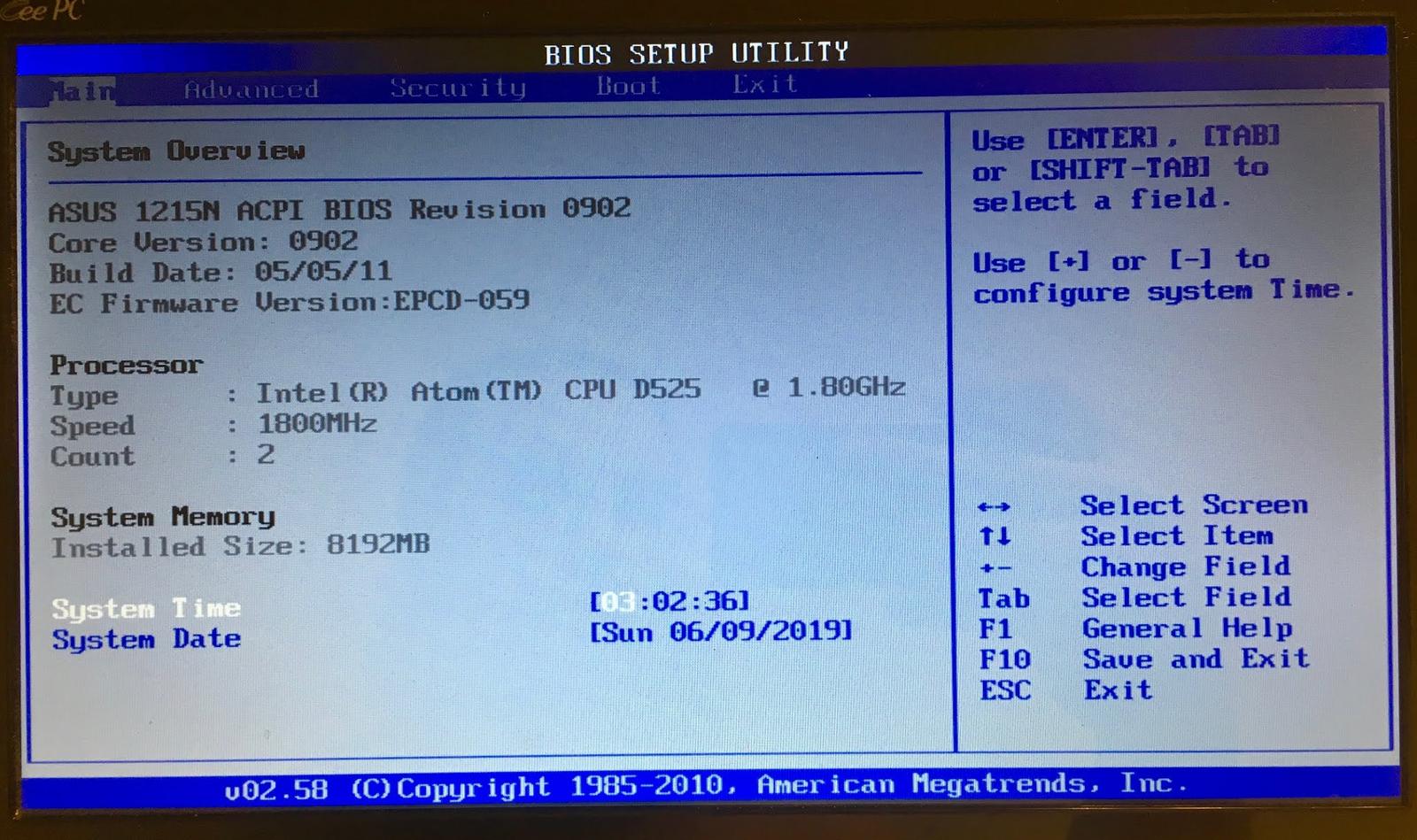 It’s always a good idea to update random machines to the latest BIOS, because nobody really bothers updating them, and there are often useful fixes. Updating the BIOS on this is a bit of a pain in 2019 - the BIOS doesn’t appear to properly handle FAT32, and it doesn’t handle large drives, either. Several attempts to update the BIOS with a 2GB USB stick failed entirely. The trick: create (in your preferred OS) a small (64MB seemed to work fine) FAT16 (“FAT” on Windows - not “FAT32”) partition - and then copy the BIOS image over, name it 1215N.ROM, boot with the Alt-F2 combo, and see what happens. It should update to 0902. I still can’t believe this thing recognizes 8GB of RAM!
