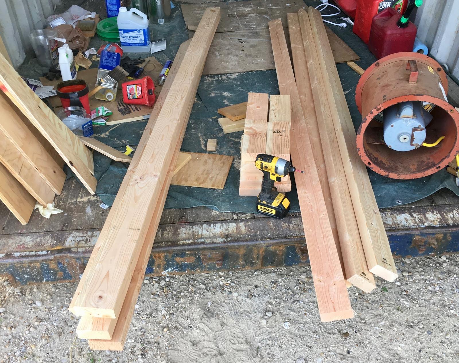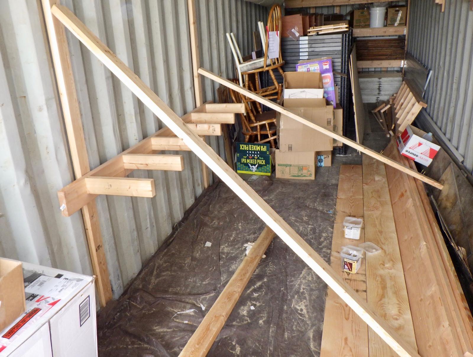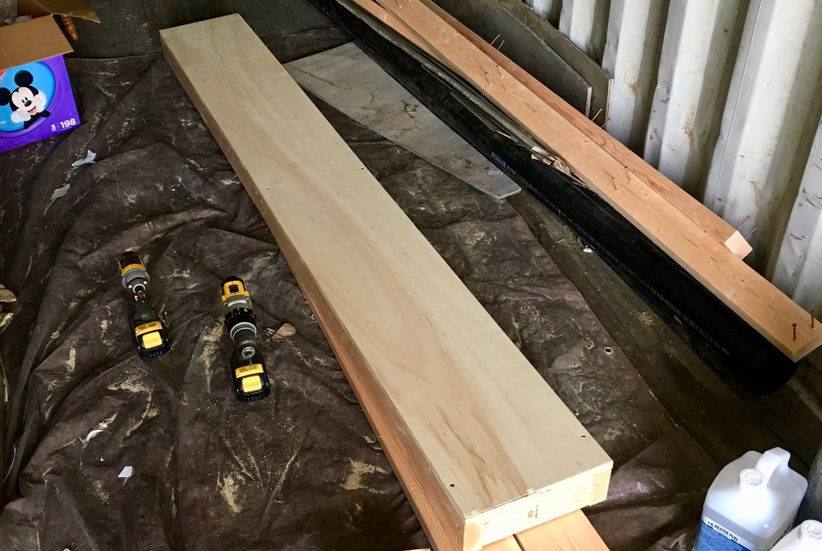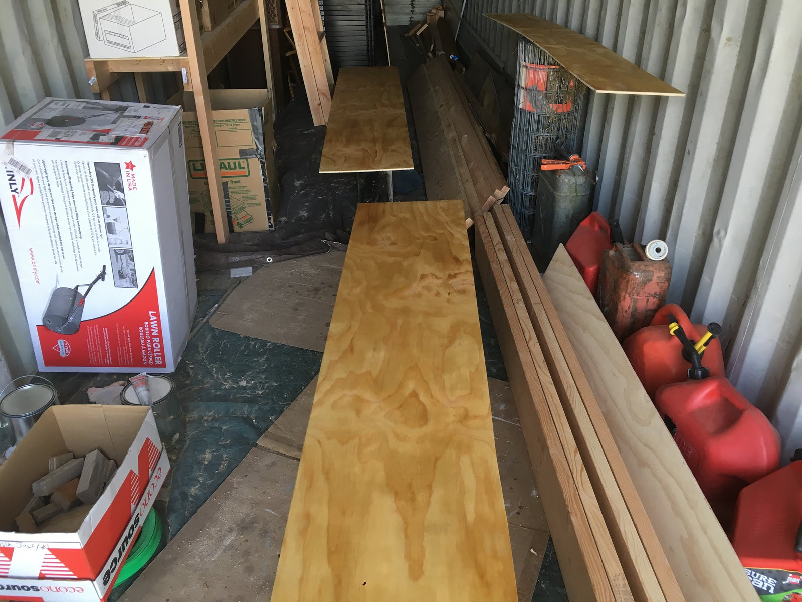 If you haven’t ripped plywood into proper width pieces, now is a good time to do so. You might also want to urethane them. People who are concerned about my lack of urethaning recently - fear not. I’ve urethaned some plywood for Rev 2 of the shelves for the church container. My shipping container is increasingly full, despite being filled with shelves. I’ve got property fuel along the right, spare lumber in the back, shelves… I’m making good use of the space.