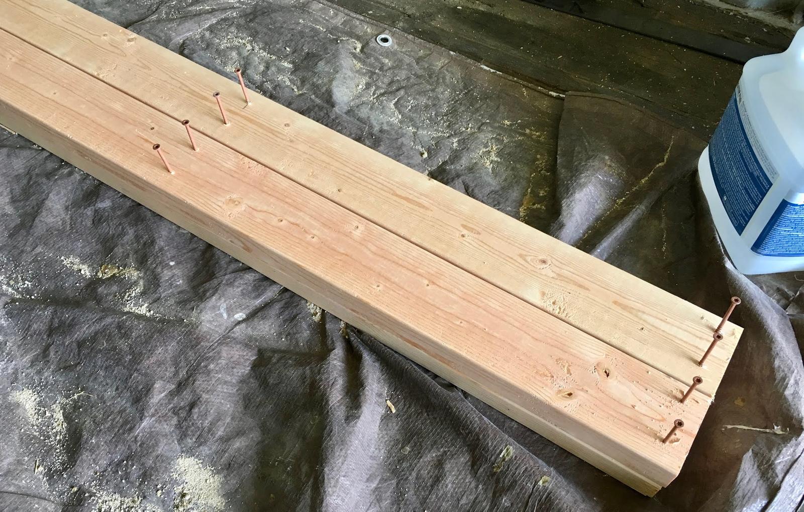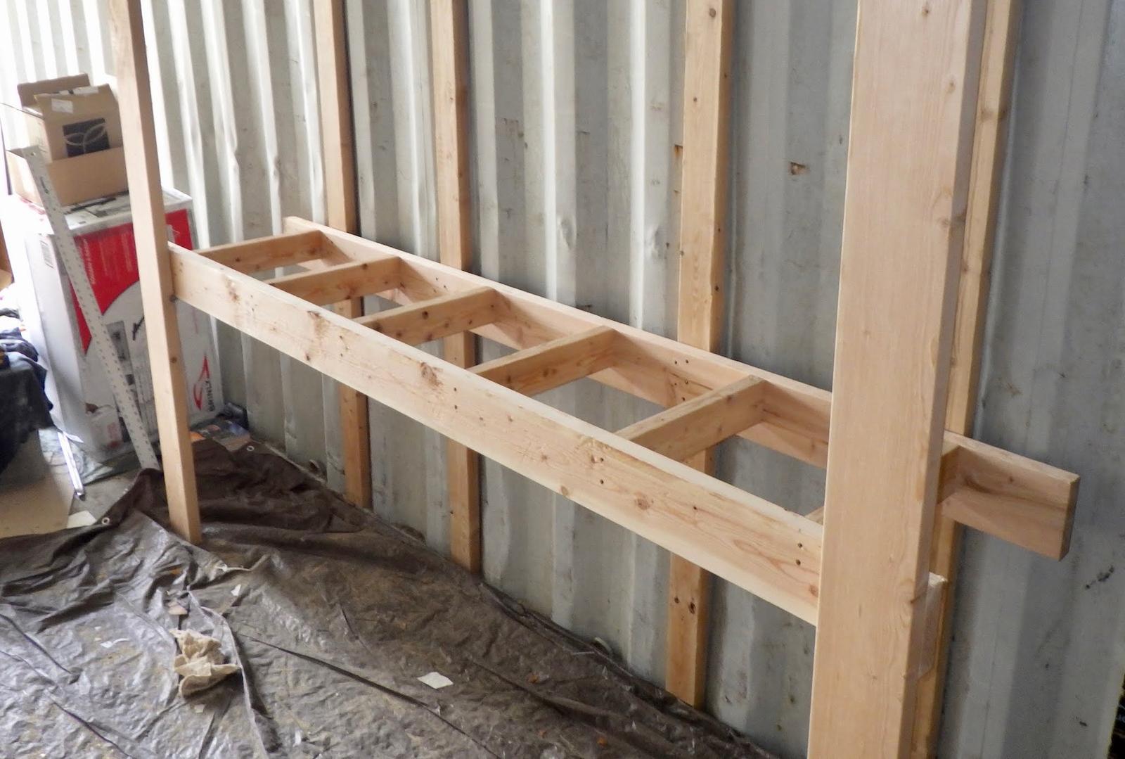 Like all my shelves, I build the basic frame on the ground. You can see my response to the cracking ends on the other shelves here - my cross-members are further inboard, and I’m using the 8”/16” spacing I mentioned previously. Random boards work very well for supporting the shelving while you’re screwing pieces together. I’m getting somewhat close to a “There, I Fixed It!” post here at times… but if you’re out towards the middle of nowhere, it’s quicker than waiting for someone to show up and help you out. Most of these projects are completed while my wife and kids are have headed into town for a few hours.