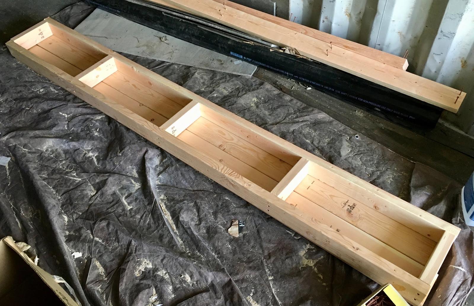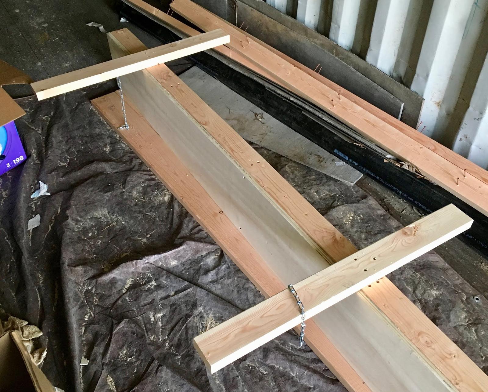 I’ll typically use a few flat boards as a base to build the shelf supports. Again, this is Rev 1, I used 6 cross members (spaced closer) for Rev 2.