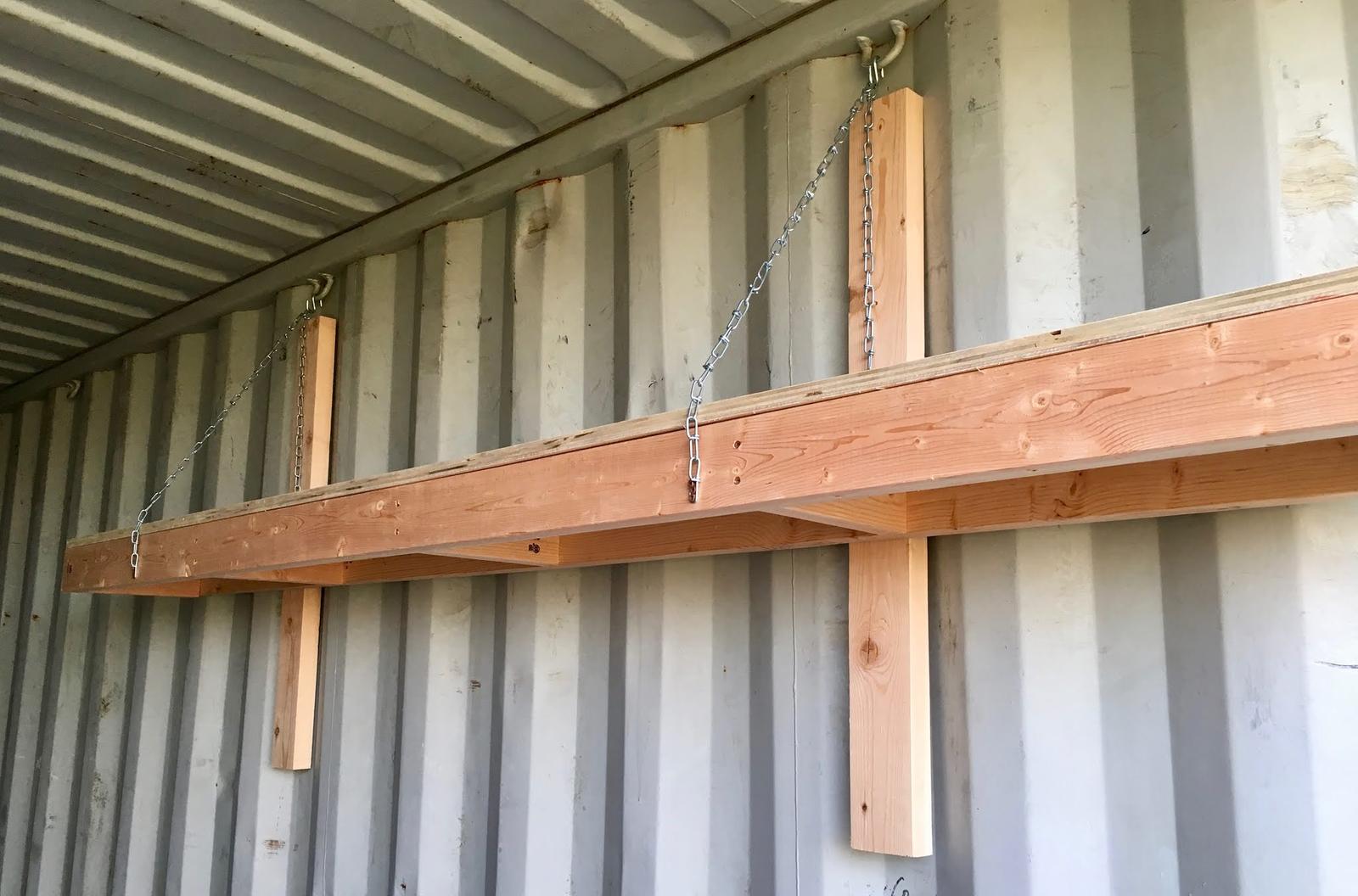 If you’ve got a shipping container, you’ll almost certainly want to build hanging shelves for it!