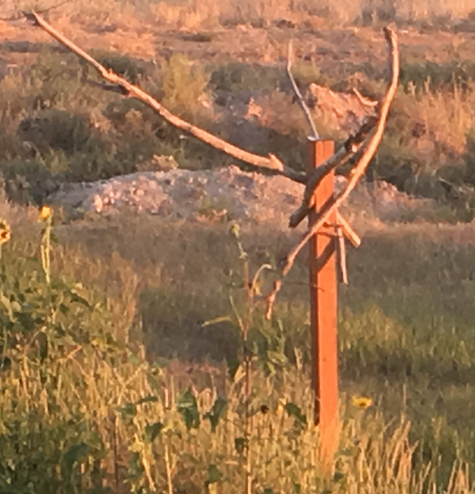 Bang out a couple holes at the proper spacing. Of course, I decided to put my stand out of the way in a rocky corner of the property, so I spent quite a while banging on rocks and generally drilled some ugly holes. You can rip rocks nicely out of the ground with an auger, if they catch and you have enough force!