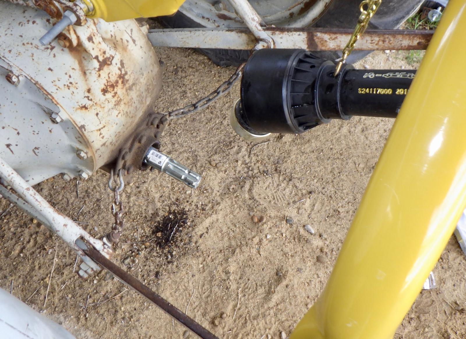 Conveniently, the included PTO shaft comes with a quick disconnect at the tractor end. You’ll be good friends with this on any of the Ford N series tractors, as they don’t let you stop the output shaft while the hydraulics work. If you want to pull it free without screwing in deeper, you get off, disconnect the shaft, and then run the hydraulics without the auger turning.