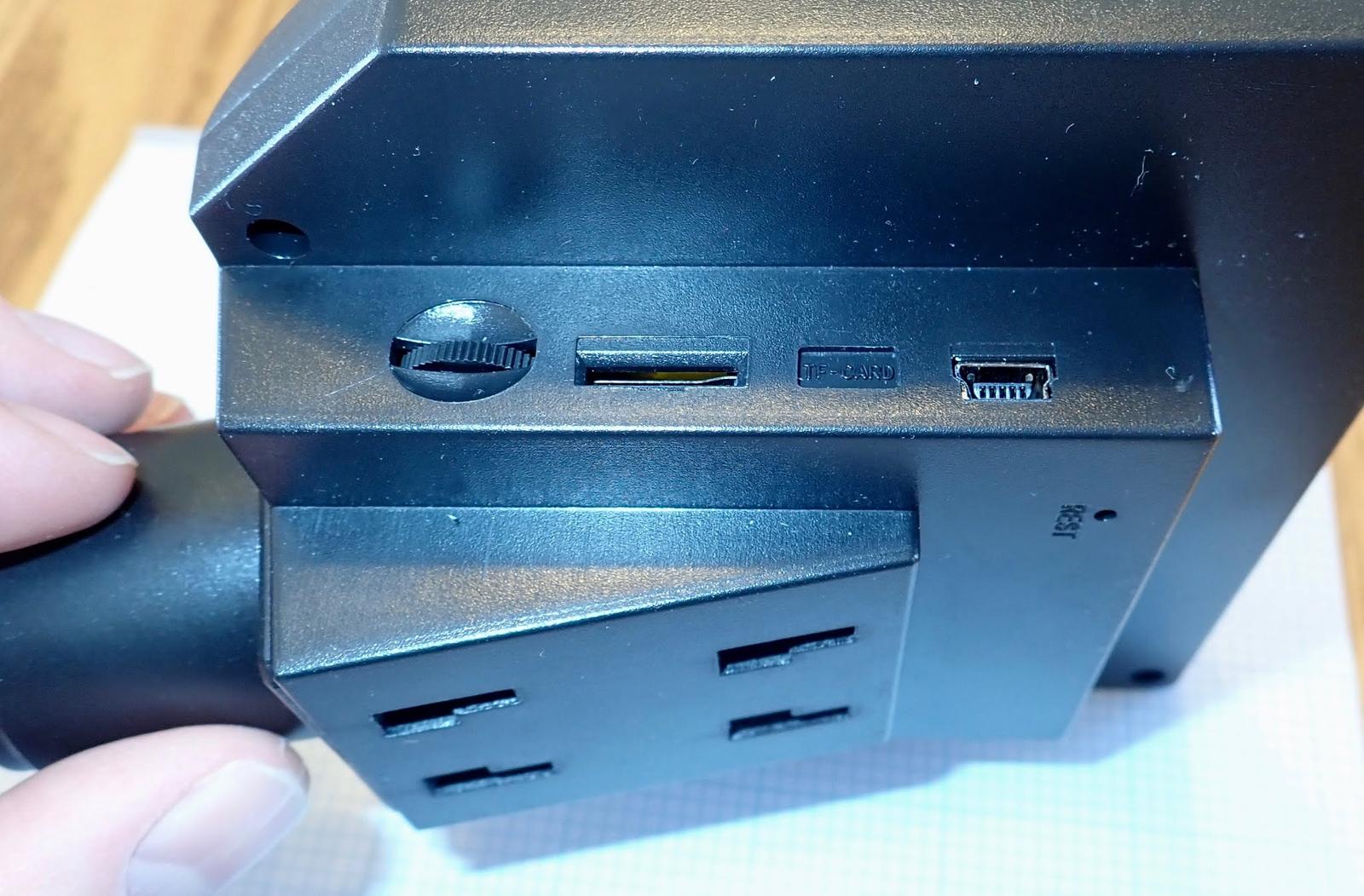 The right side of the unit contains the rest of the controls. There’s a LED brightness adjuster (the rotary dial), a micro SD slot (the card, annoyingly, faces with the top of the card towards the screen, which makes removing the card more annoying than it should be), and a mini USB port for charging and interface - it allows you to use the microscope as a webcam if you jump through a bunch of hoops.