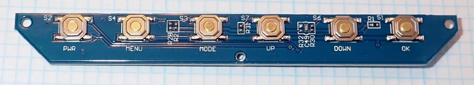 The keyboard is pretty simple - some cheap buttons on the front, pressed by the plastic keys from the case. There’s nothing too exciting on the front but some resistors.