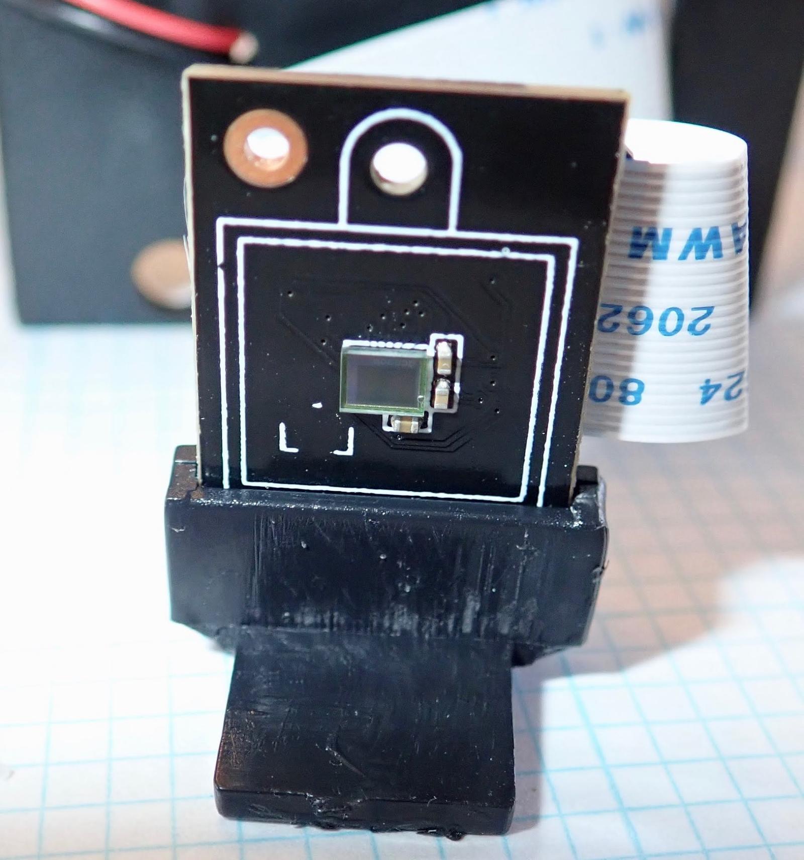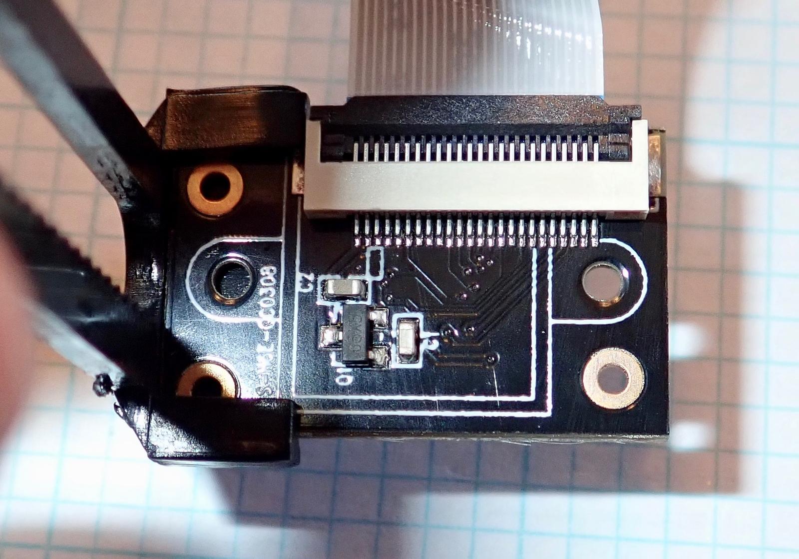 The back of the carrier board has a transistor and two capacitors. There’s not much on the board. It’s really just a basic interface between the ribbon cable and the image sensor.