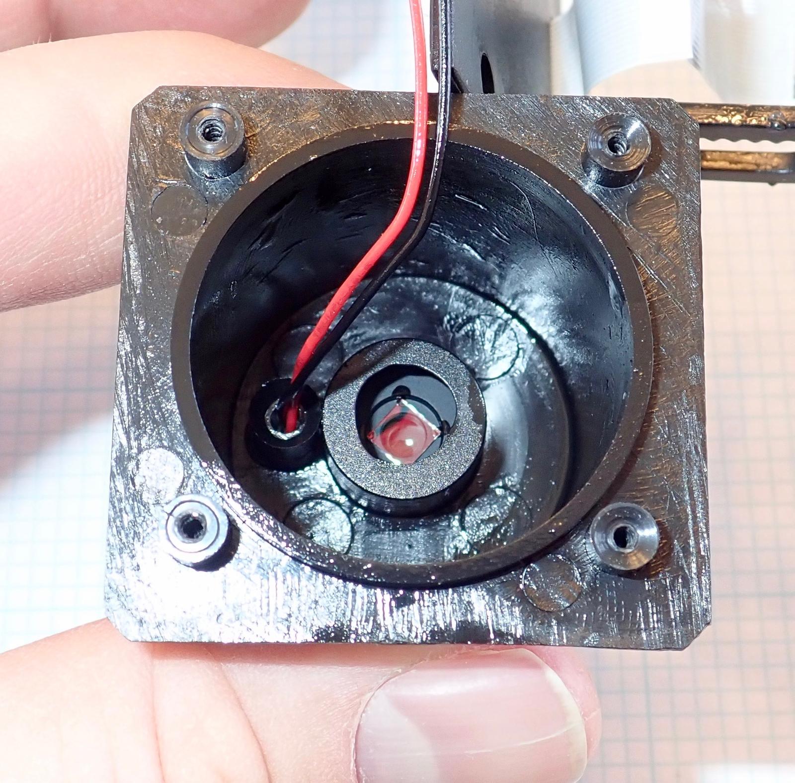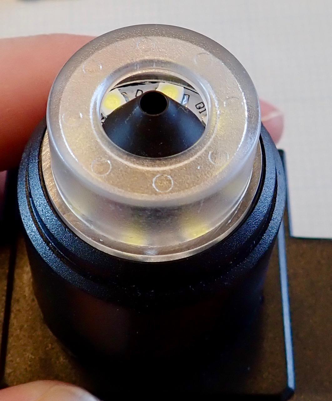 The outside of the lens assembly contains the (quite bright) LED ring, and a plastic funnel that serves to keep stray light from the LEDs from blowing out the image. In practice, it seems to work quite well - there’s plenty of light for the sensor, and the image doesn’t appear excessively blown out.