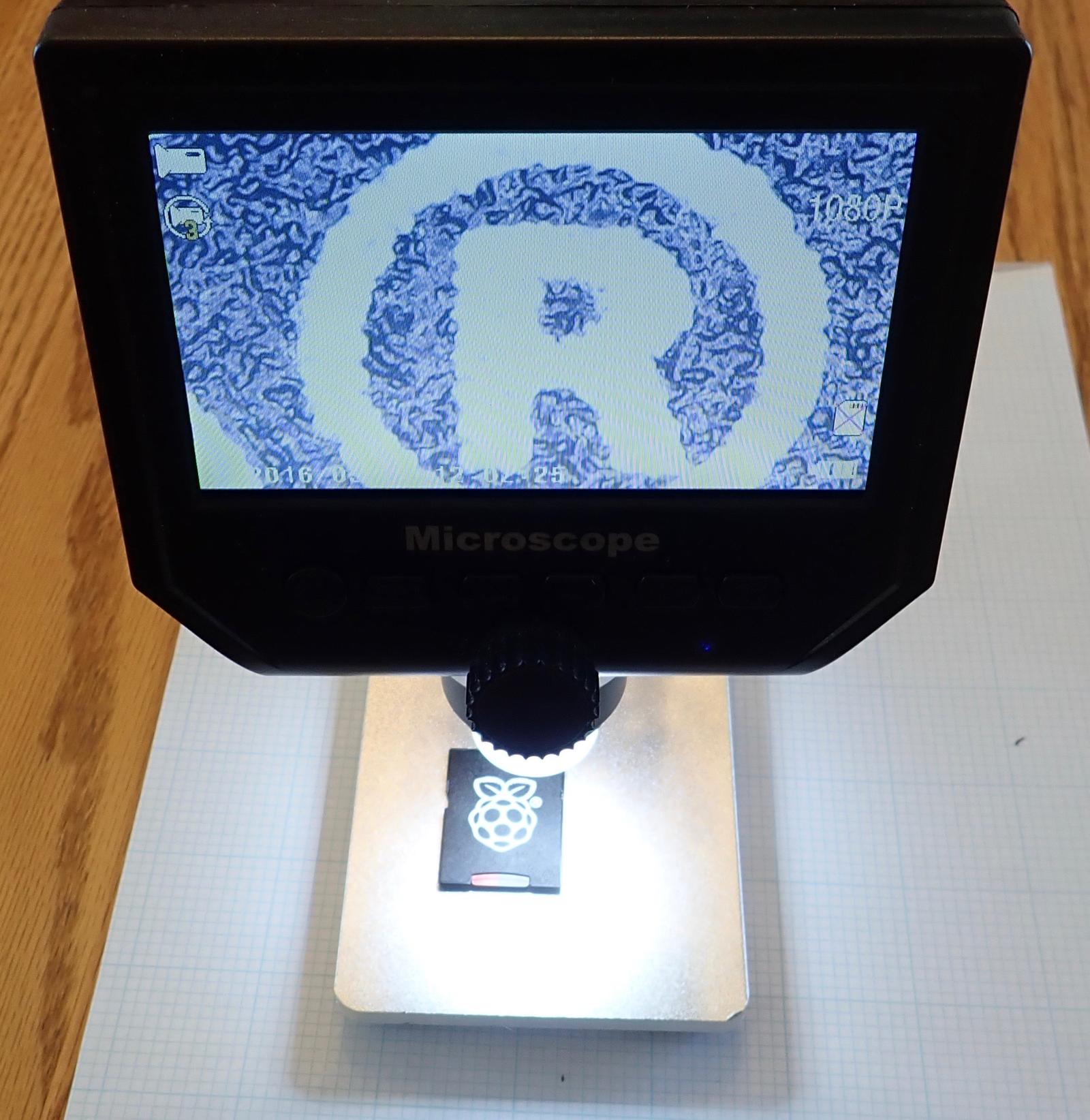 This is a battery powered microscope, which sounds pretty handy - no need to have yet another cord running around your workbench. Plus, you can save images and video to a micro SD card for later review (though the aspect ratio on the images, as saved, is wrong).
