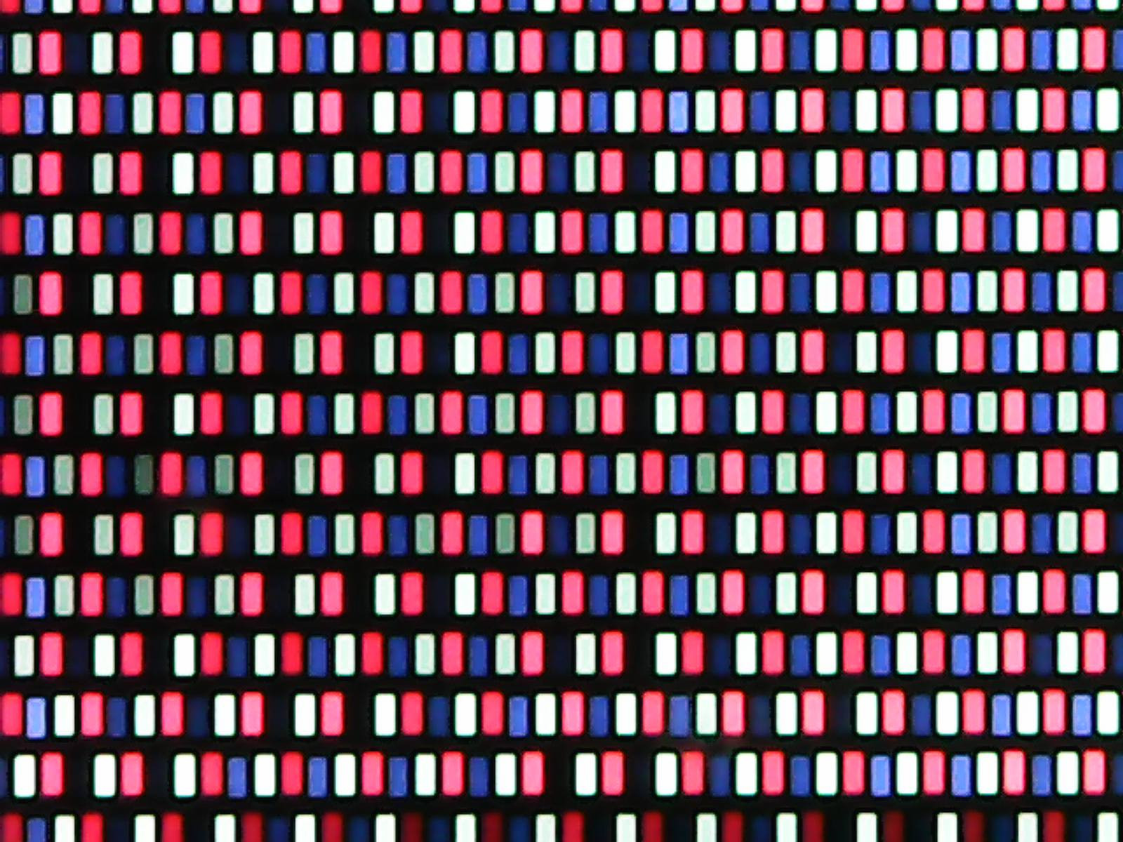 Here’s an iPhone 6S screen - nothing fancy, just an old RGB LCD display. I realized after I’d taken these that Night Shift is on - that’s why there’s not much in the way of blue lit up. There’s a larger difference than I’d realized - this is a white part of the screen!
