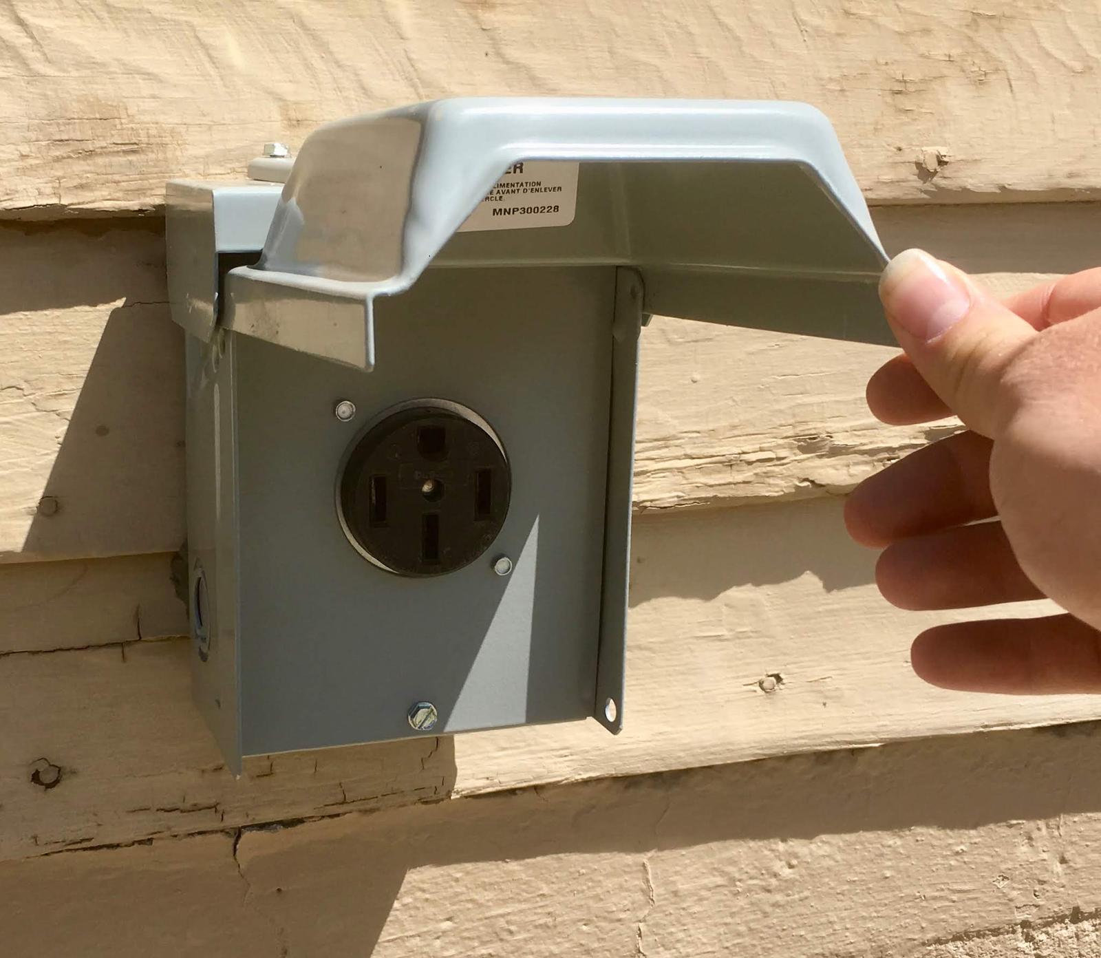 Since I don’t live in this building, and we’ve got an electrician already doing a bunch of electrical work (we’ve upgraded the outdoor panel to support the new heat pumps, replaced a bunch of knob and tube wiring, etc), I just added another item to his queue - “Please run a 240V/50A outlet out towards the street side.” A month or two later, I got the invoice for the work (around $800), and had a nice fat outlet box where I wanted it! It’s got the standard NEMA 14-50 outlet you find for dryers, electric stoves, at RV parks, and in an increasing number of garages!