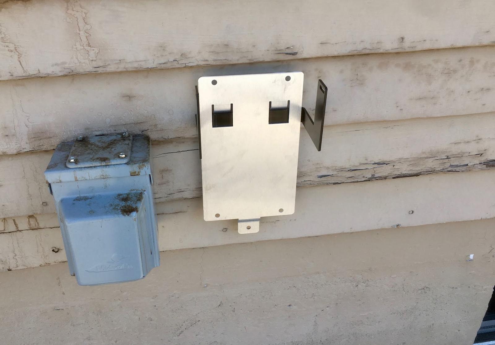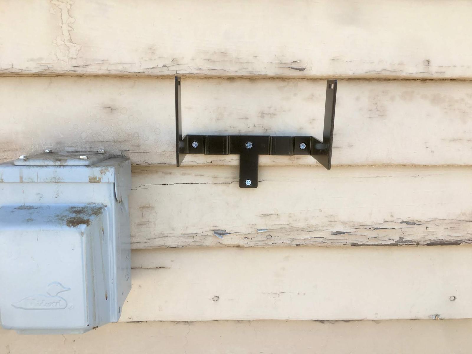 The bracket screws into the siding, though with stepped siding like this it’s important to not just crank it all the way down - you won’t get the bracket to slide in if you do that.