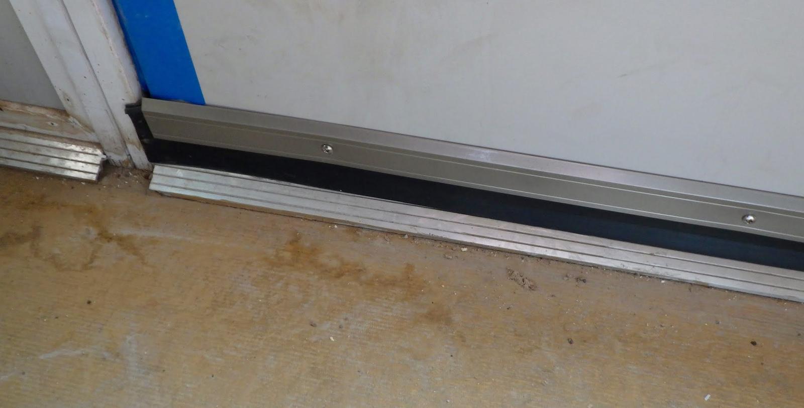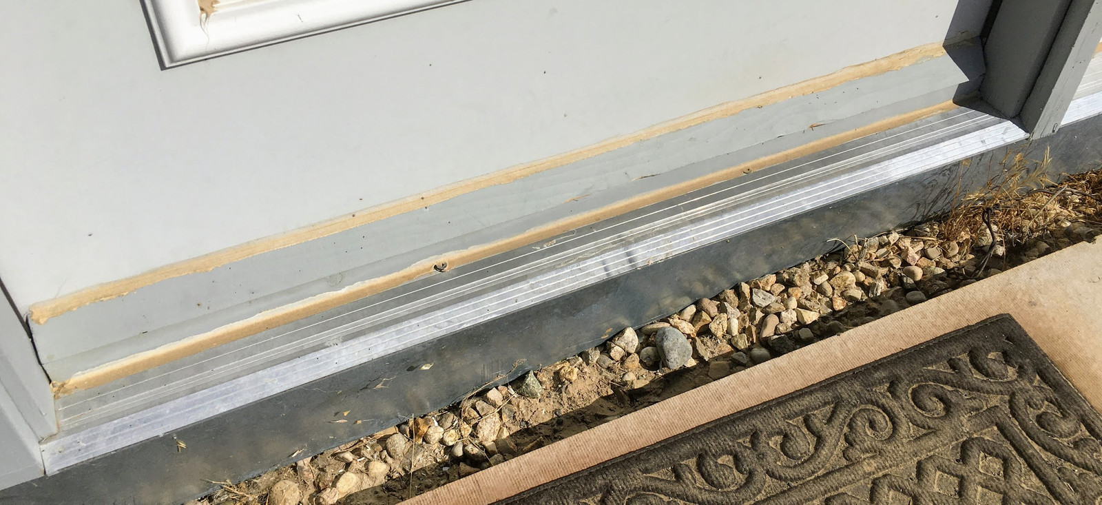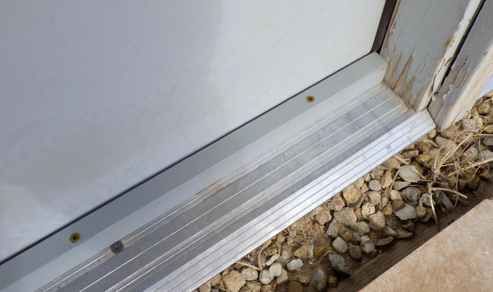 The caulk fixed the issues with leaking around the windows, but an observation of the behavior during another rain storm indicated I still had a problem - water would run down the door, pool along the sill, and the wind would blow it inside. I had a (duct tape) door sweep, and it really didn’t solve the problem.