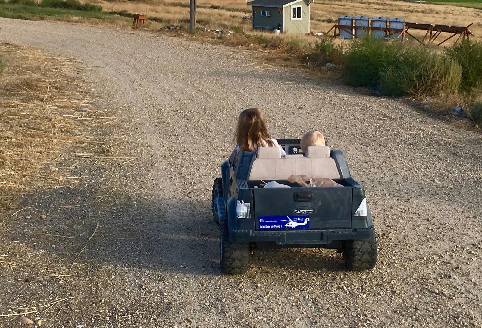 It didn’t take long for my son to figure out that his big sister was driving something. His opinion on things like this is very simple: If someone is driving something and there’s a place to sit, he’d better be riding. True for the Urals, true for the PowerWheels. Getting driven around by your big sister counts as pretty darned awesome in his book!