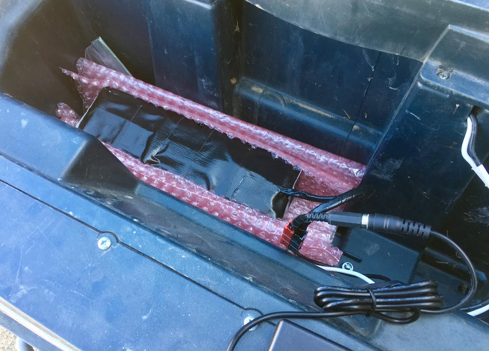 With a bit of care and packaging, the pack nestles nicely in the hood area. After experimenting with bubble wrap and popping a few bubbles, I’m using some open cell foam padding I had laying around to wedge it in place - it should be resistant to getting jolted out of place, and any sharp jolts to the chassis won’t get through to the battery. At least, that’s the theory.