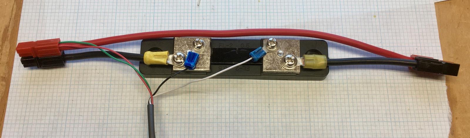 In any case, the core of the wiring is for the shunt. I need a “battery negative” lead, a “shunt sense lead, and, for this configuration, a positive pack voltage lead. Since I have some 4 conductor cable and was being lazy, I just used two of the leads for pack positive - in retrospect, doubling up on the “battery negative” would have been a better idea.