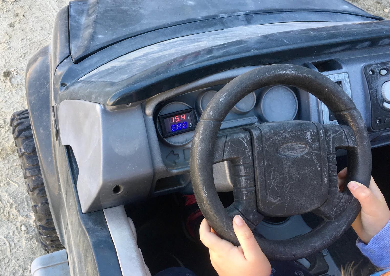 Conveniently, one can find quite cheap “volts & amps” meters on eBay! I ordered a few and once they arrived, proceeded to wire up an adapter between the battery and the motor. By putting it on a separate adapter, I can always remove it if needed, and I can use it for other purposes if needed later, though it’s probably going to hang out in the PowerWheels. Anderson connectors are cheap enough that I don’t mind spending a few on something like this.