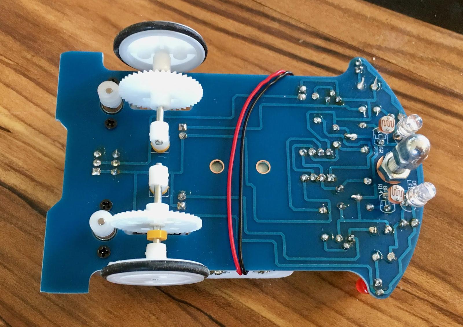 A not-quite-4 year old isn’t going to be doing the soldering on one, but she’s sure able to fold the ends of components down, stick them through holes, and apply flux. It really is an easy build. Troubleshooting when it doesn’t work is a bit trickier. I eventually worked out that one of the transistor legs had come loose internally (likely while being worked into position by said not-quite-4 year old). You might consider doing the main drive transistors yourself.