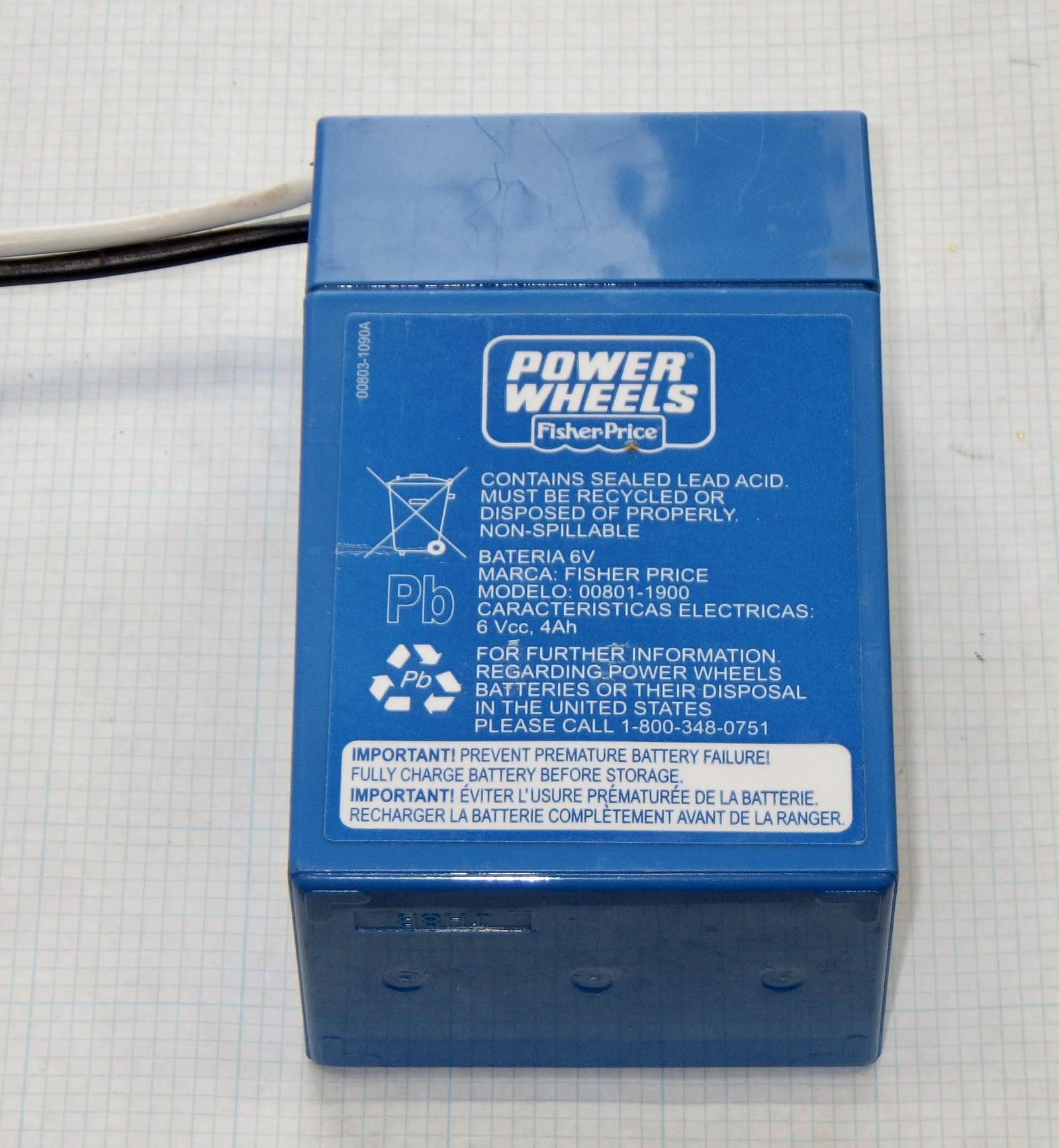 This is a “toddler” type Power Wheels - single seater, and it’s got a 6V/4Ah sealed lead acid battery. Not much power, not much capacity, and certainly not my style of battery. Yeah, I could just buy a replacement (and a charger), but that’s no fun. I’ve got a shop full of battery building equipment - we’re going lithium!