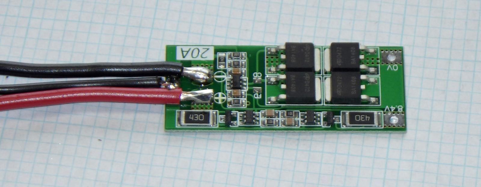 The battery management system (BMS) for this pack is nothing fancy - it’s a random 2S BMS from eBay. This one is rated for 20A, which seemed enough for the little motor in here. This serves two main purposes: Balancing the pack (not actually needed with these cells, since they self balance quite well), and providing high and low voltage cutoff. The high voltage cutoff shouldn’t ever trip - it’s there in case the charger fails. The low voltage cutoff is really important for a kid’s pack, though. If they try to drive it below a safe voltage, the pack will simply shut down until charged. It prevents deep discharging lithium - which is quite damaging, and firmly into the category of battery abuse.