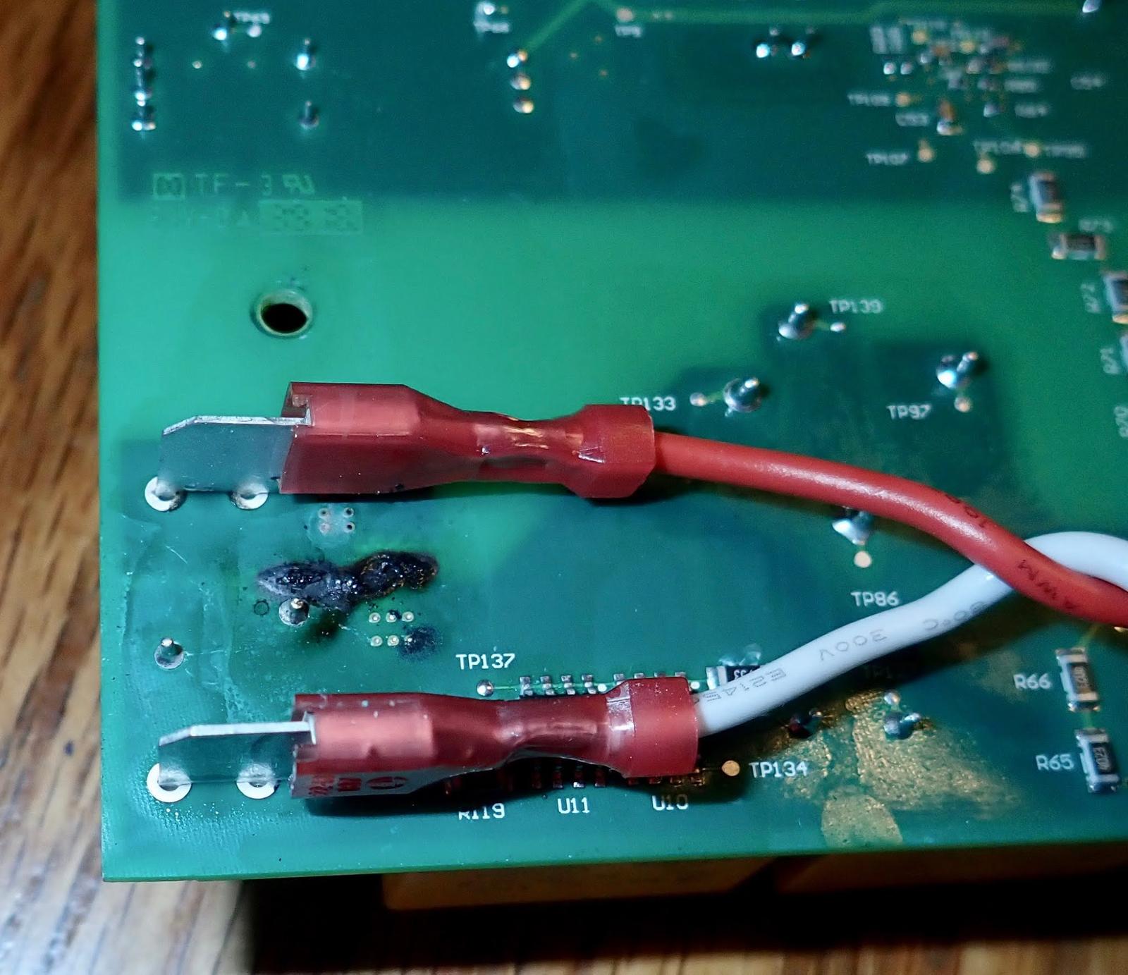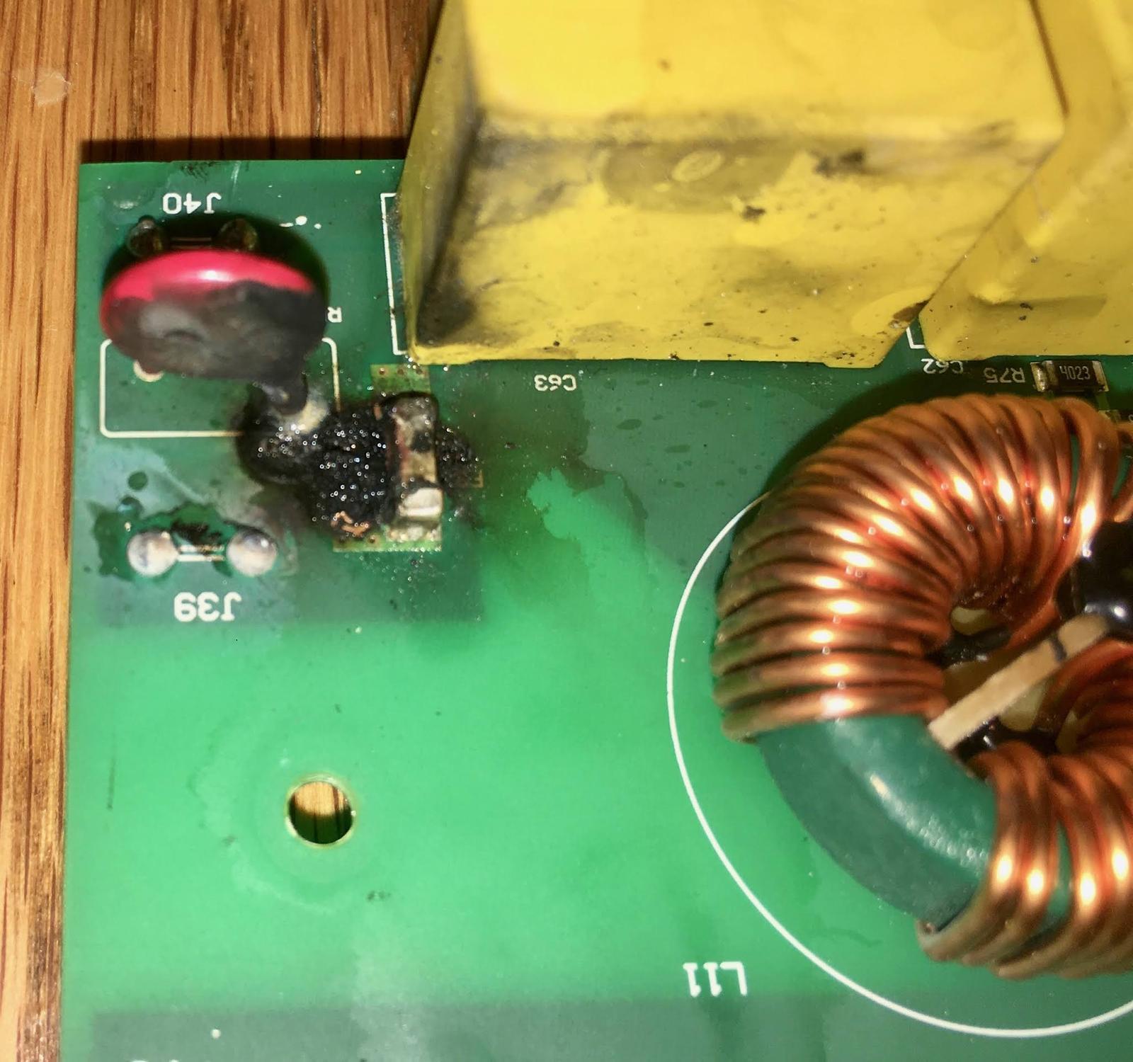 This is what burned PCB looks like. You either know what it smells like, or you don’t - and it’s not a nice smell.