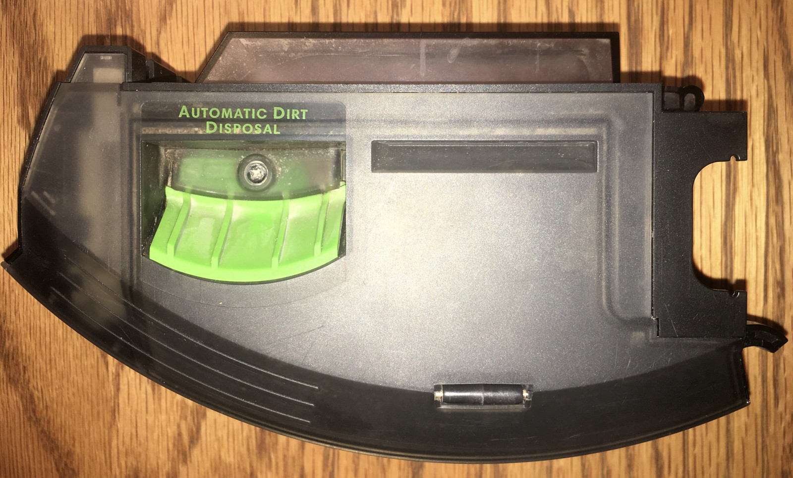 If you don’t have a clean base, you may be wondering how, exactly, the Roomba empties the bin out - because there’s no obvious way for the bin to empty (if you have a standard i7). The trick is that the clean base actually comes with a different bin - with a port in the bottom for emptying! This bin also has a small wheel on the back to help guide the bin up and over the plate, I suppose (I’m not actually sure why it needs the wheel). The port on the bottom of the bin lines up with the emptying port on the base and all the dirt gets sucked out. This process also does a halfway decent job of sucking dust off the pre-filter, though you’ll still need to clean out the main filter in the Roomba on a regular basis.