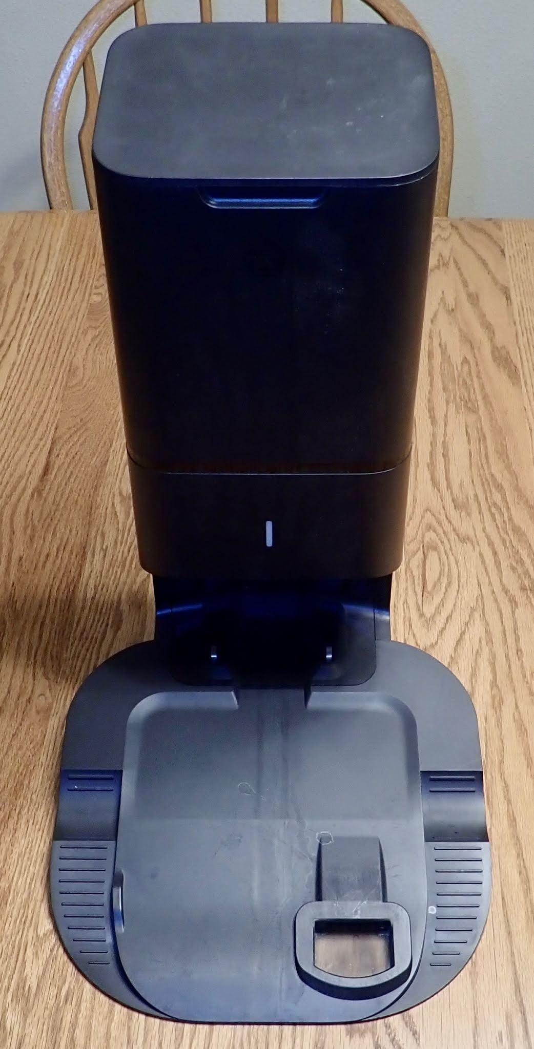 The Clean Base is a nice looking home appliance. It sits up against a wall and plugs into an outlet. Instead of the small charging plate of the stock Roomba charger, there’s a large plate for the Roomba to roll on - and an opening in the rear for the bin to empty through. The bag lives in the top, and it’s a well built bit of machinery.