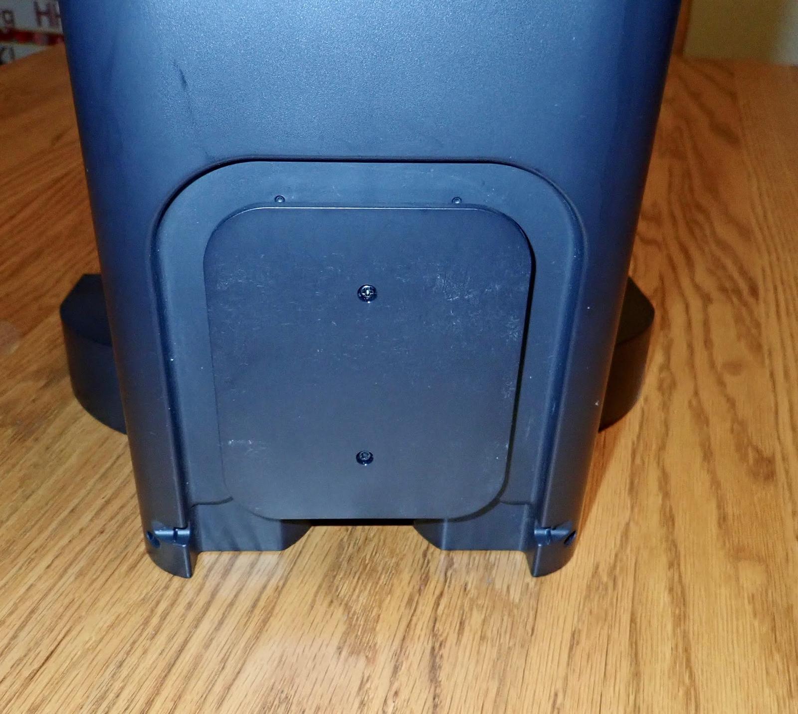 On the underside, there’s the normal product label, a bunch of screws, and the dirt path (which can be removed if something gets wedged in there).