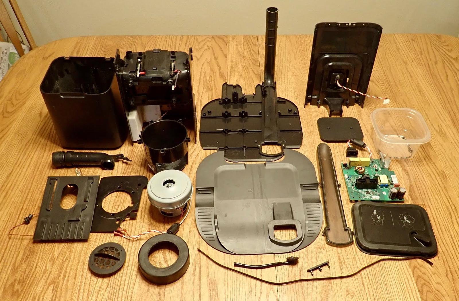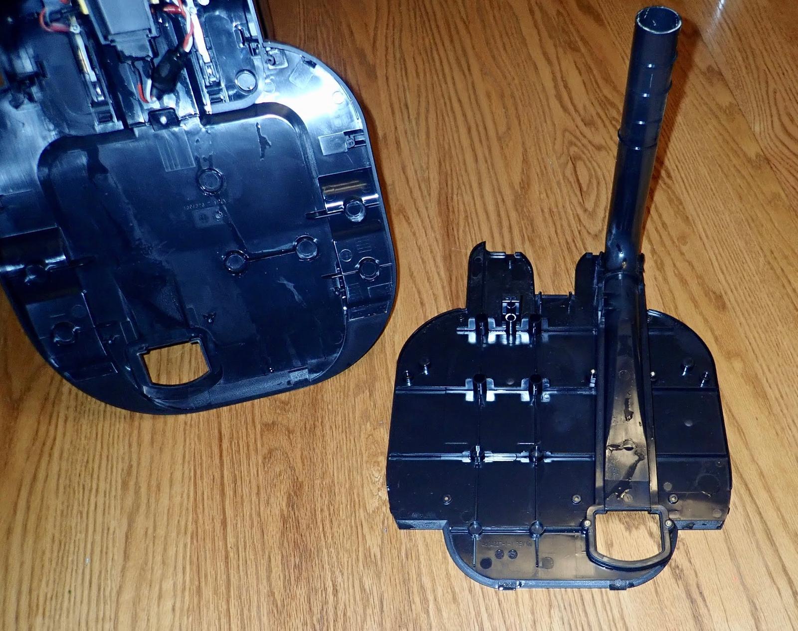 With a bit of work, the bottom pulls away. The bulk of the vertical vacuum path is attached to the bottom, and would wiggle out with a bit of work, though I didn’t bother removing it.