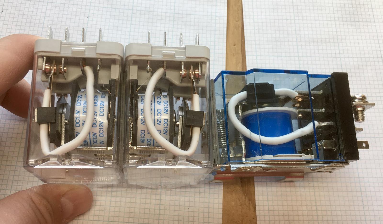 The first relay (the “sideways” one) is nothing more than the main power contactor. When power is applied to the system via the power switch, this pulls the relay closed and powers up the main electronics.