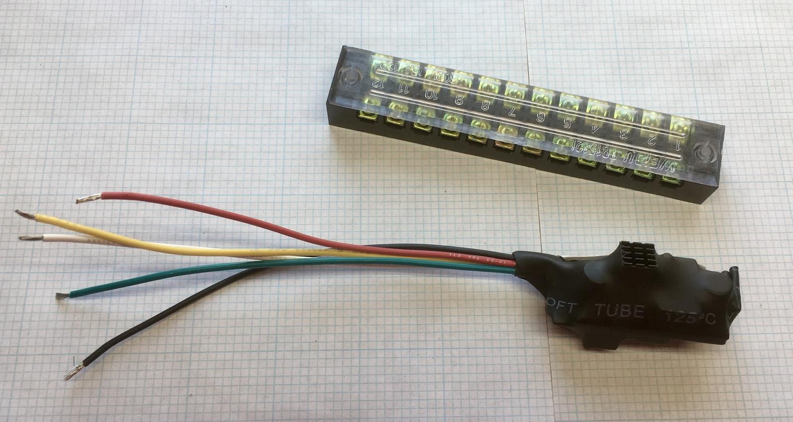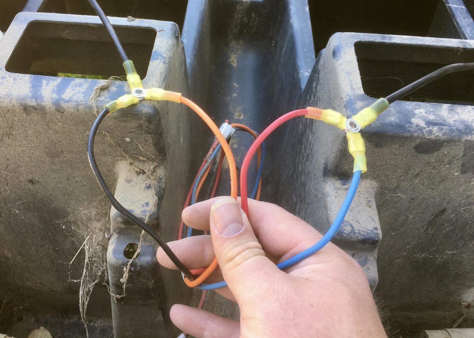 On mine, black and orange went together, and red and green went together. The color scheme is… interesting. I’m sure there’s a legend somewhere online, but it’s far quicker to just test them. You might note that these connections are heat shrink - so I heat shrunk them!