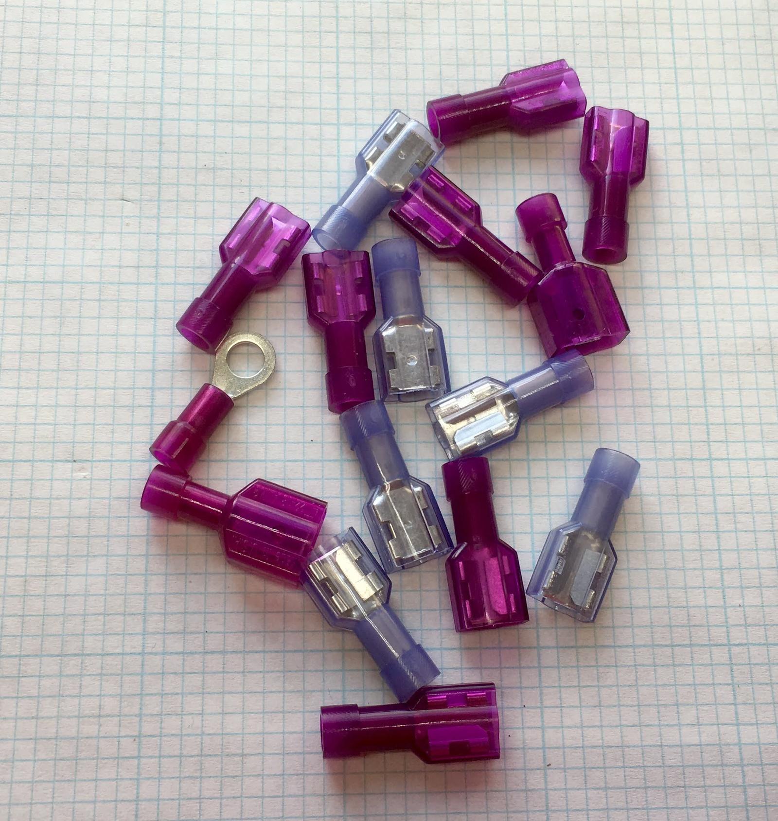 One thing not mentioned in the directions - you’ve got purple crimp connectors and blue crimp connectors - plus some male versions of those. Pull the male ones out - it’s indicated where you use them. The purple ones are for smaller wire sizes, so anything that’s just a single small wire? Use the purple. The blue ones are better for the junction connections that require a few wires sticking out once, though on the ones that are just a small wire and diode, you might consider a purple one. It’s a bit hard to crunch the blues down enough for that.