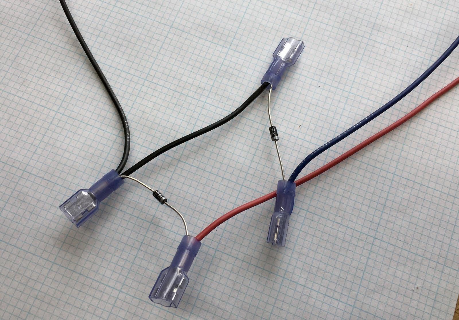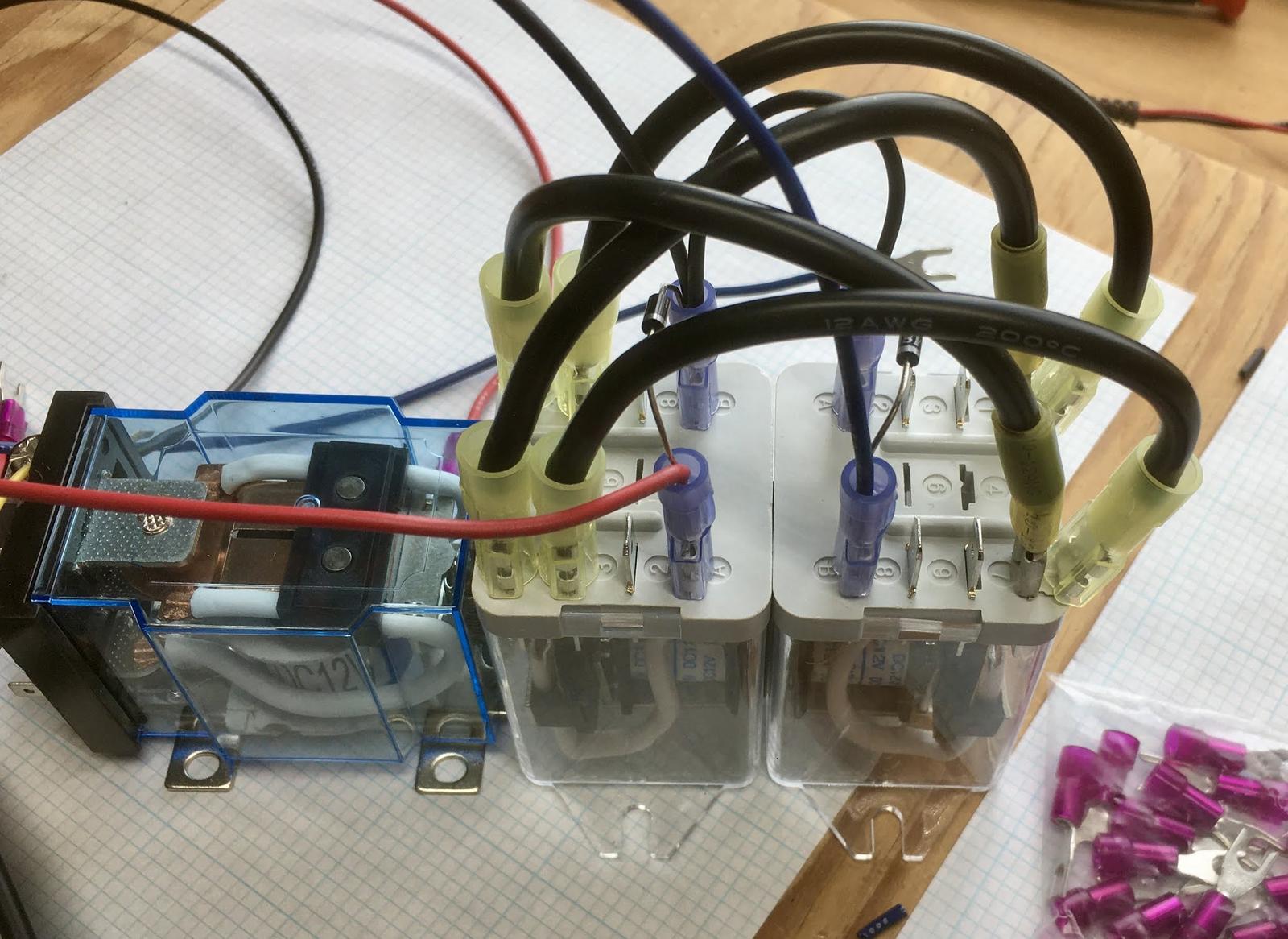 After you’ve finished with the easy stuff, start building the relay harnesses. Just follow the wiring diagram, and make sure the diodes are pointing the right way!