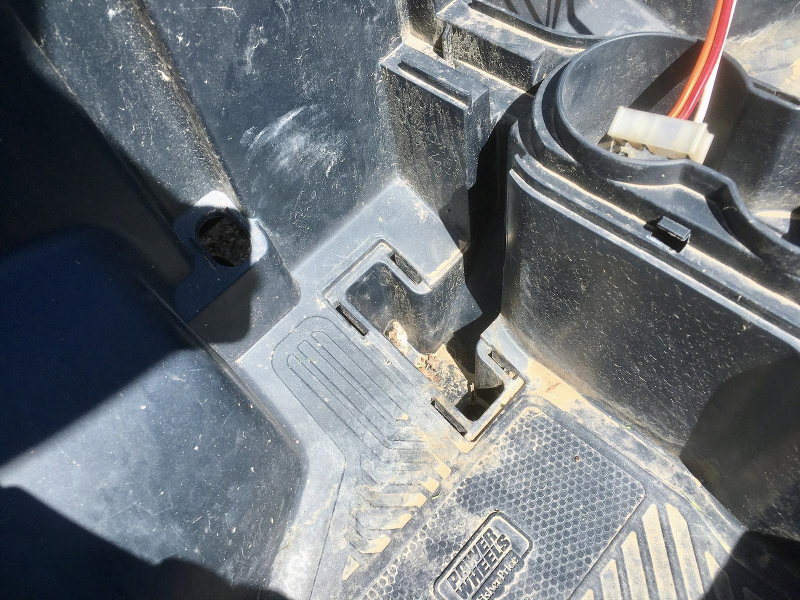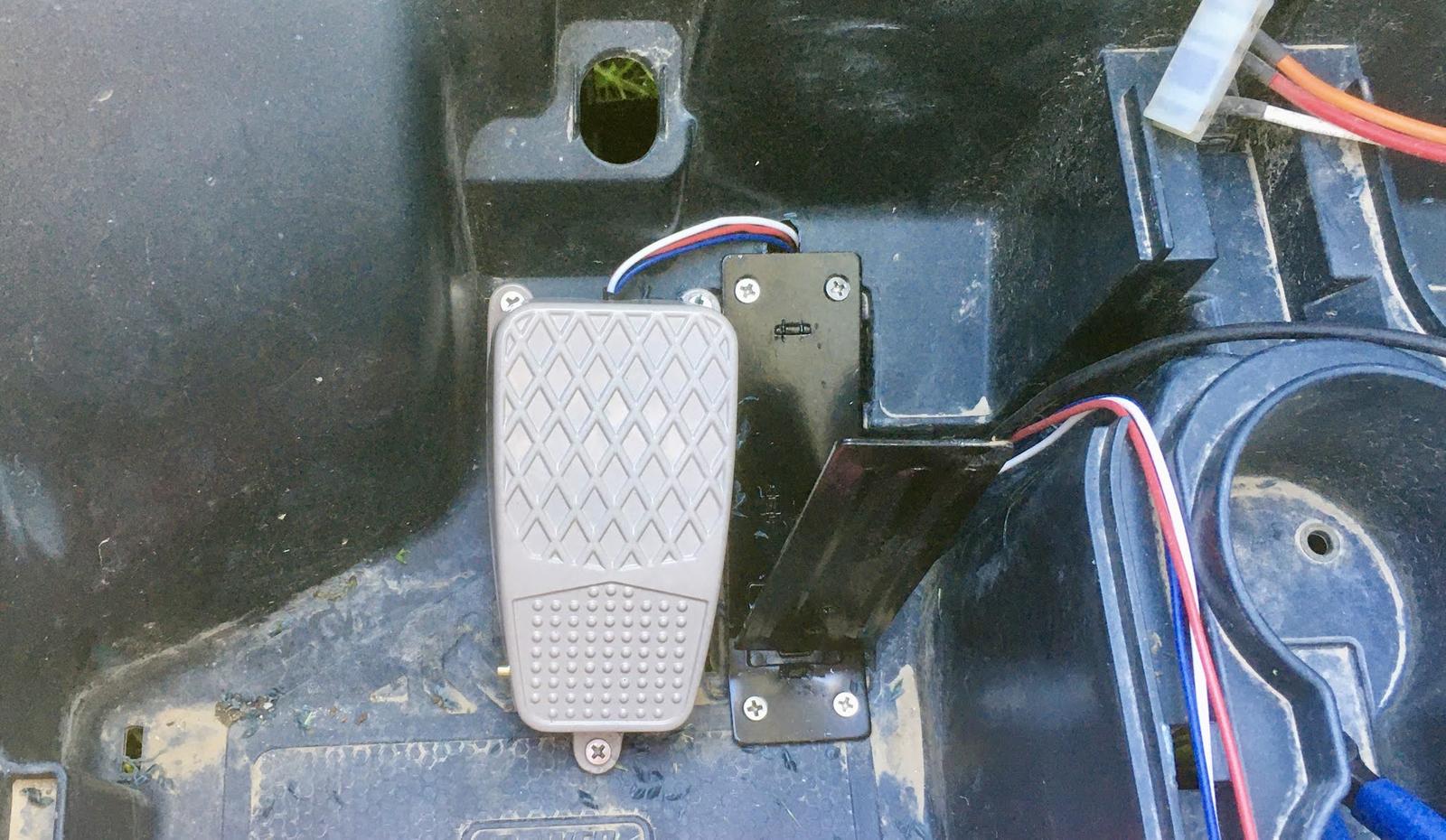 You’ll need to do a bit of body work on the car to fit the new throttle - it’s almost, but not quite, the same size as the stock pedal. It doesn’t quite fit. But it’s easy enough to do. For ours, at least, this is what the pedal opening looks like. You can either trim some down from the top or the bottom to fit the new pedal.