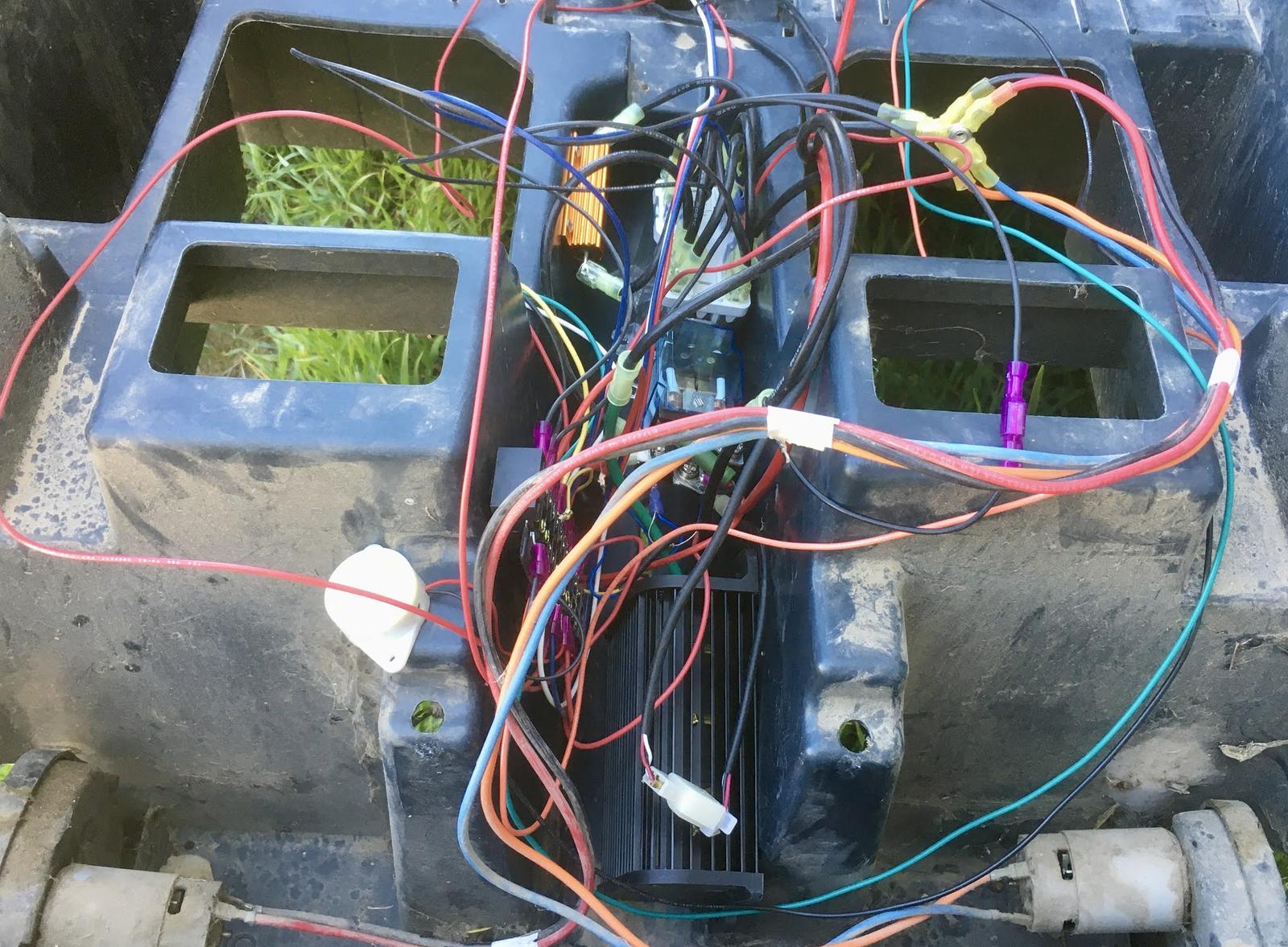 There’s an awful lot of wiring, and you’ve got to route quite a bit around the vehicle. Just start at one end and clean your wiring up as you go. Screw stuff down as you can. I’m not entirely sure having the braking resistor screwed into plastic is going to be a great option, but I’ll see how it goes. I’ve told her if the brakes start to smell, back off - so… realistic, at least!