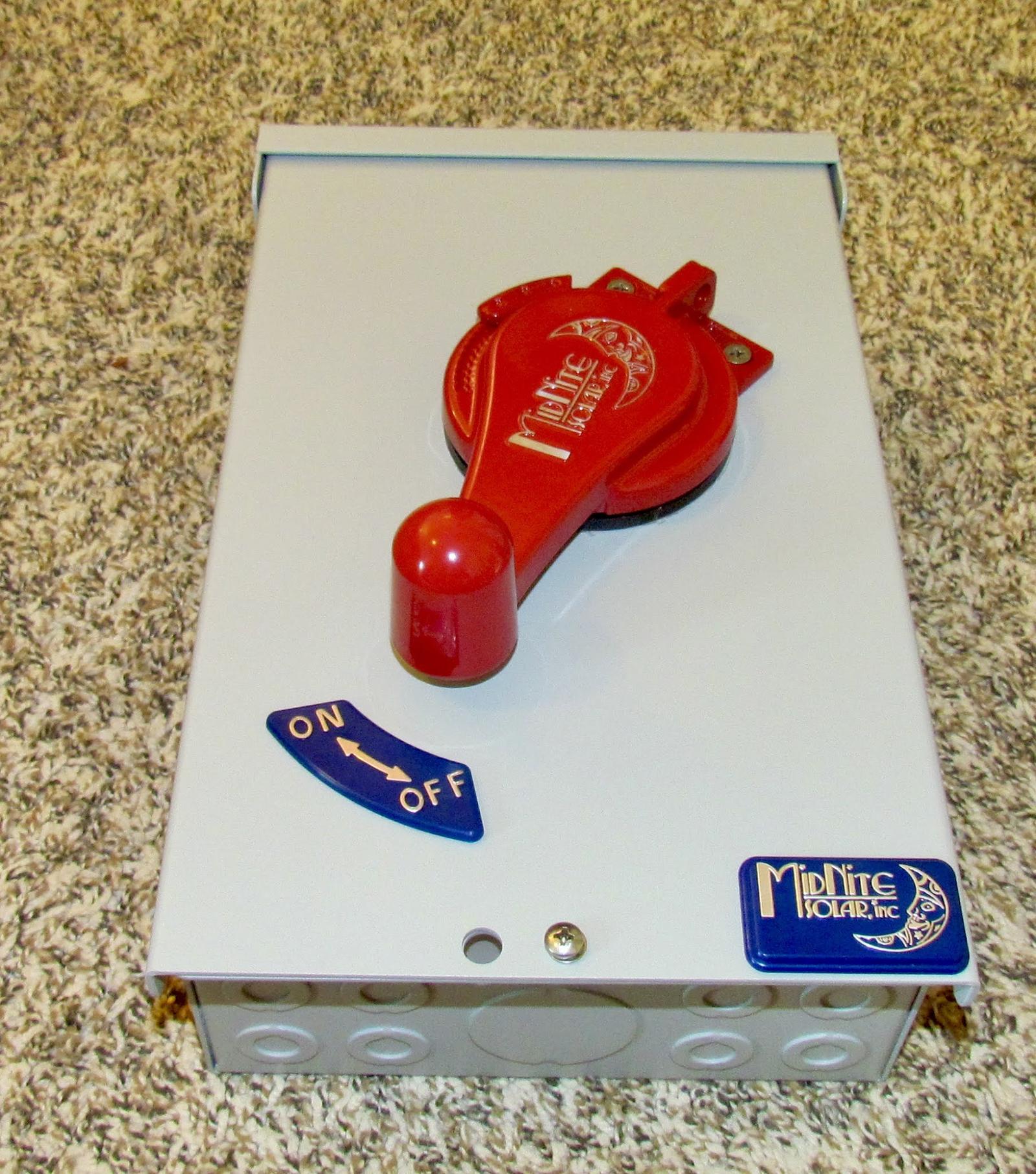 The next bit of interesting hardware I’m using is the Midnite MNPV6 Combo - this is an AC/DC combiner with a large (and satisfying) external switch that can be locked in the off position as required by most power companies. I’m using these as both combiners and disconnects between the inverters and my outside breaker panel.