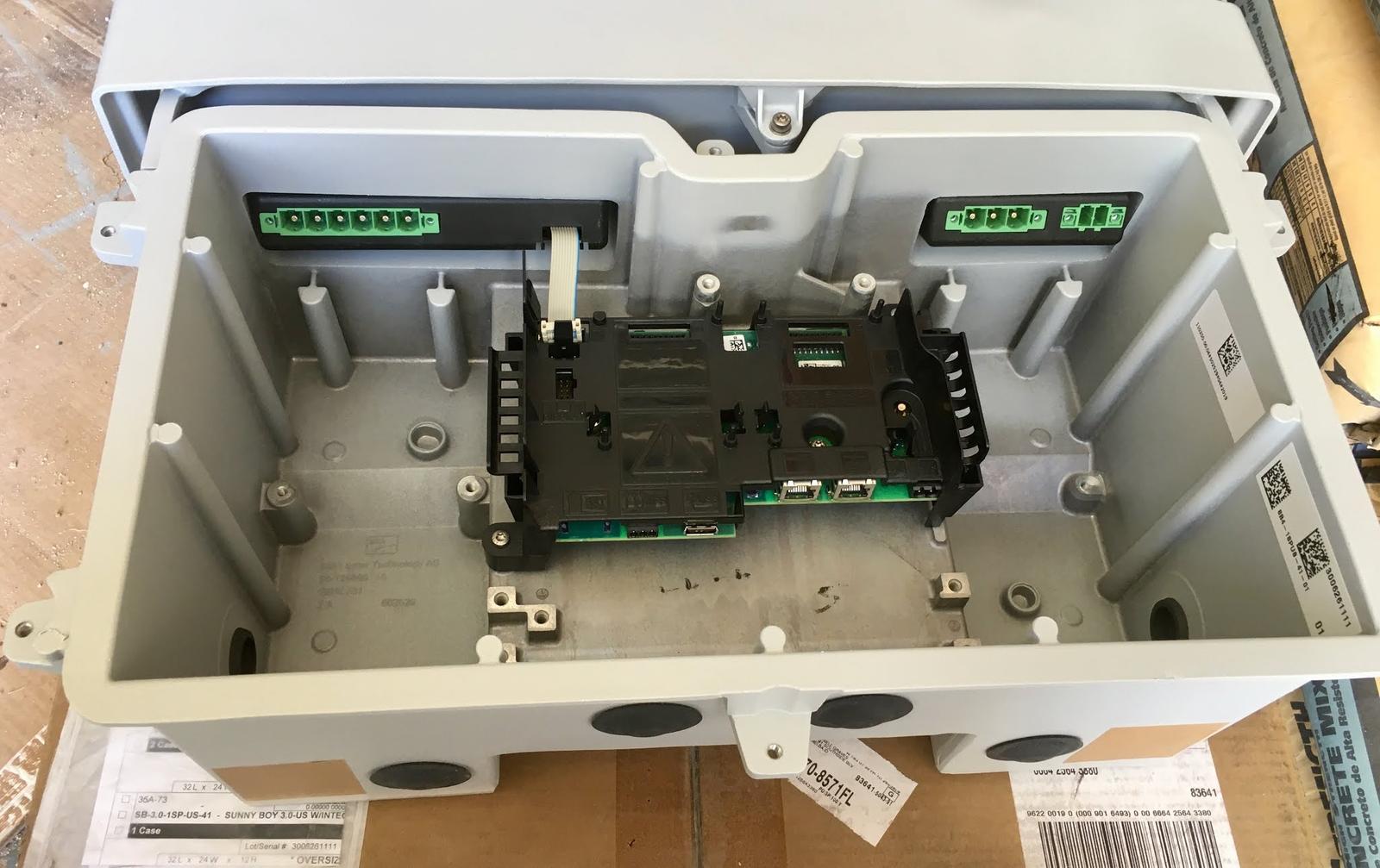 The approved design utilizes a pair of Sunny Boy US-6.0 inverters and a US-3.0. These are string inverters, intended for use with long series arrays of panels, and have the benefit of some limited backup capacity if the grid is down. What’s inside? Let’s take a look!