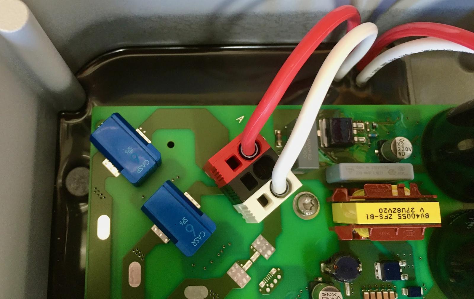 The bottom cover comes off (captive screws - very nice!) to reveal the main connections for power, and the low voltage communication interface. This plate is just a simple plastic plate with a good seal on it (plus the display). If you wonder why there are warnings about opening the panels in the cold, my guess is that these seals get hard and then don’t properly seat again.