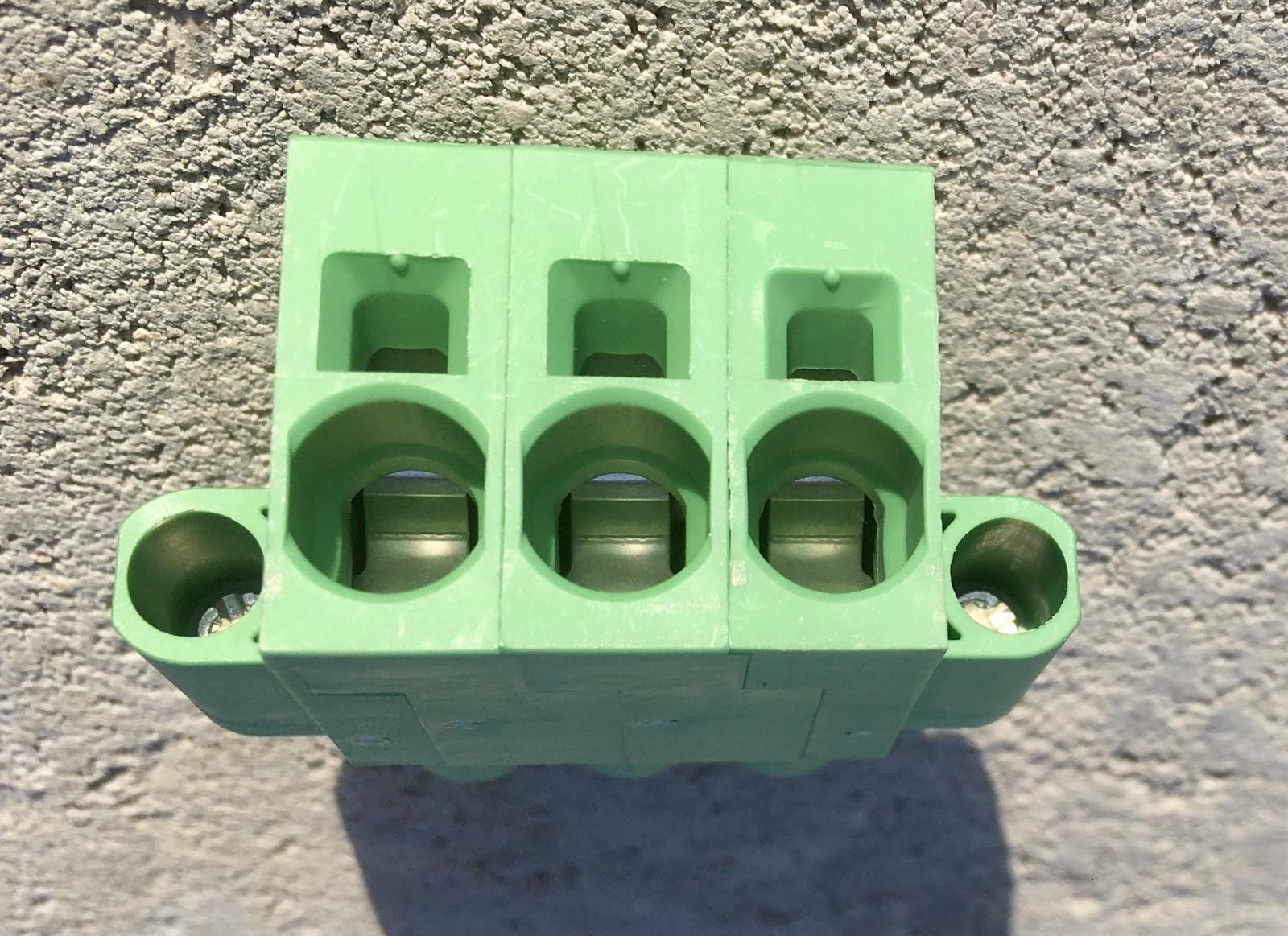 On the right, the three pin connector is for the normal grid interconnection (L1/N/L2), and the smaller two pin connector at the far right is for the backup outlet - just 120V, L/N.